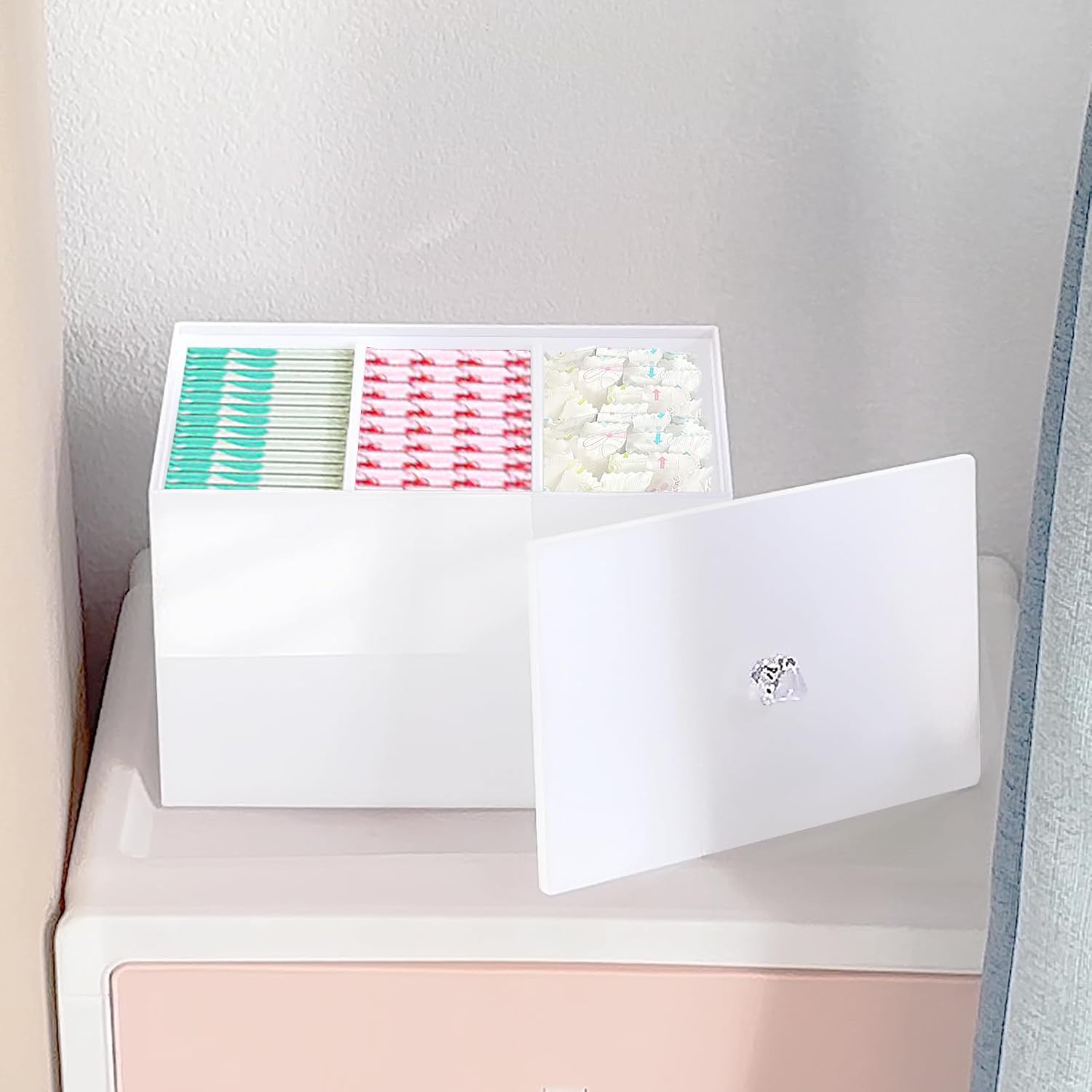 Tampon Box for Bathroom, Tampons and Pads Storage Holder, Women Period Organizer Container, White