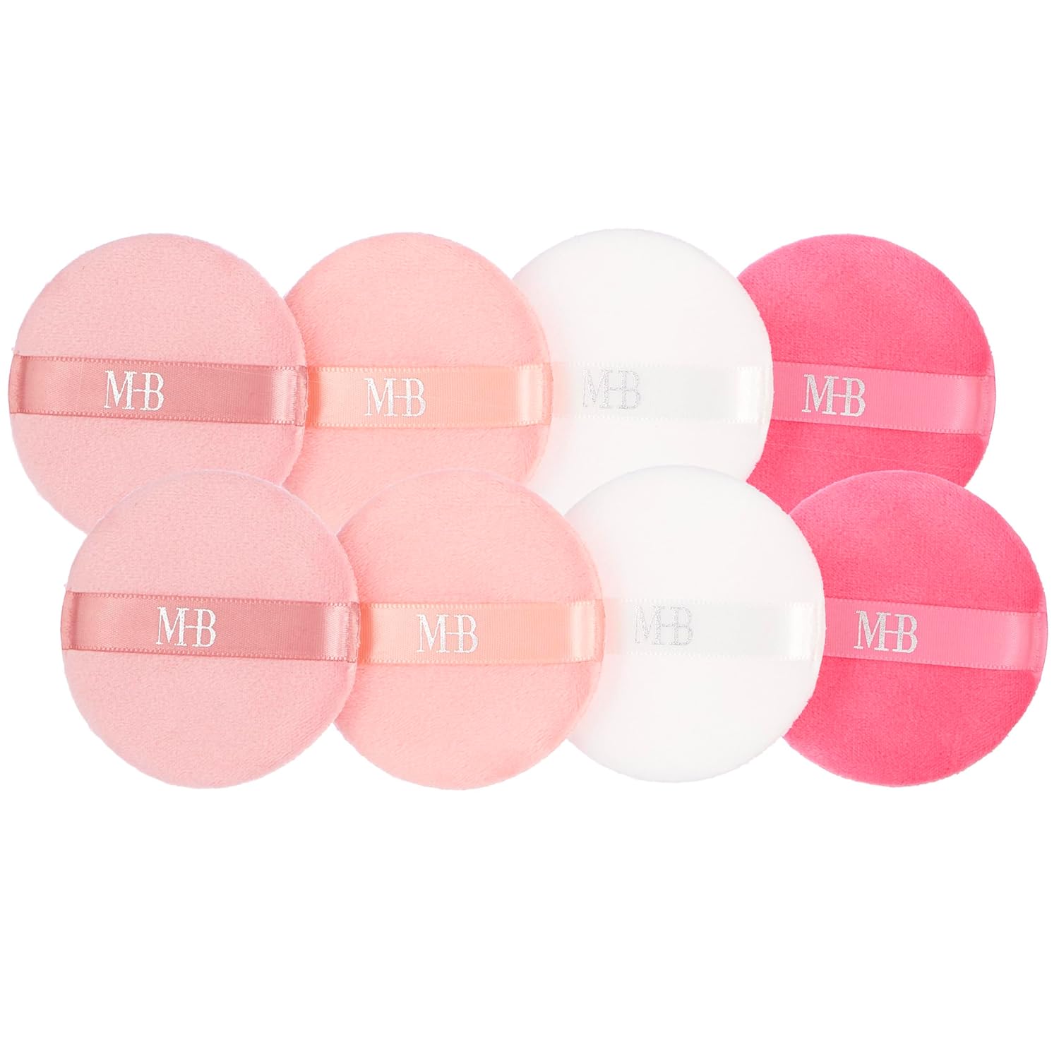 - Beauty Puffs Value Pack - This set includes 8 round-shaped beauty blenders for everyday makeup application; value pack features heart-shaped beauty blenders in four lovely colors including white and varying shades of pink