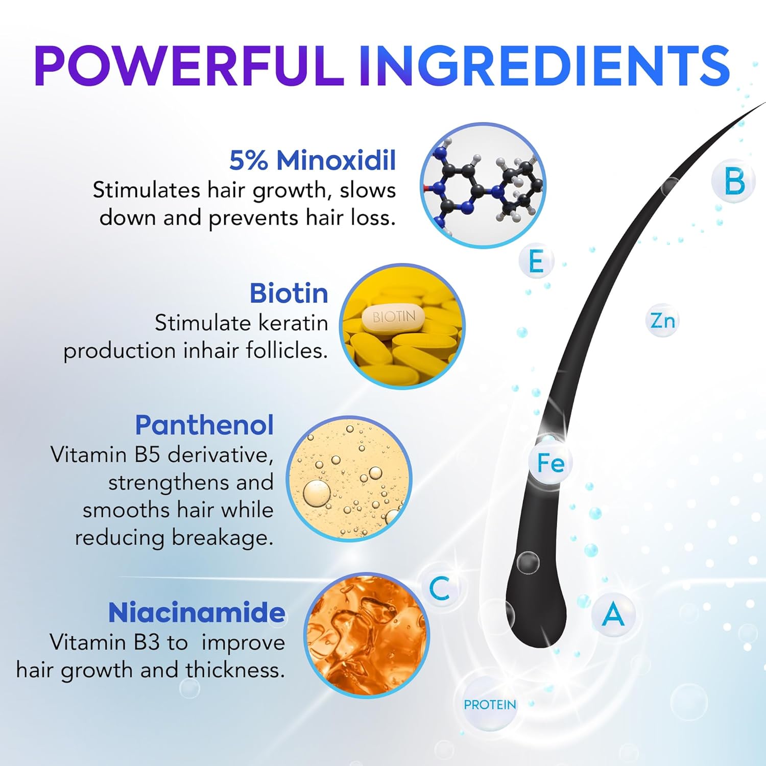 - SAFE & EFFECTIVE - The synergy between our blend of Minoxidil 5 percent and Biotin ensures a safe and rapid-acting serum for hair regrowth. This combination enhances hair follicle activity and promotes hair growth.