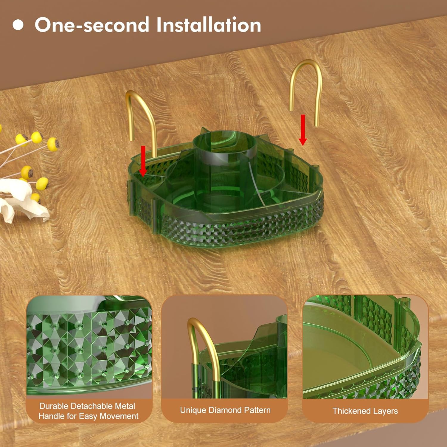 Awenia Rotating Makeup Organizer 360, Stackable Adjustable Large Capacity Cosmetic Storage Unit,Dresser Bathroom Kitchen Countertop Organizer with Metal Handle, Plus Size (Gem Green, 1 Tier)