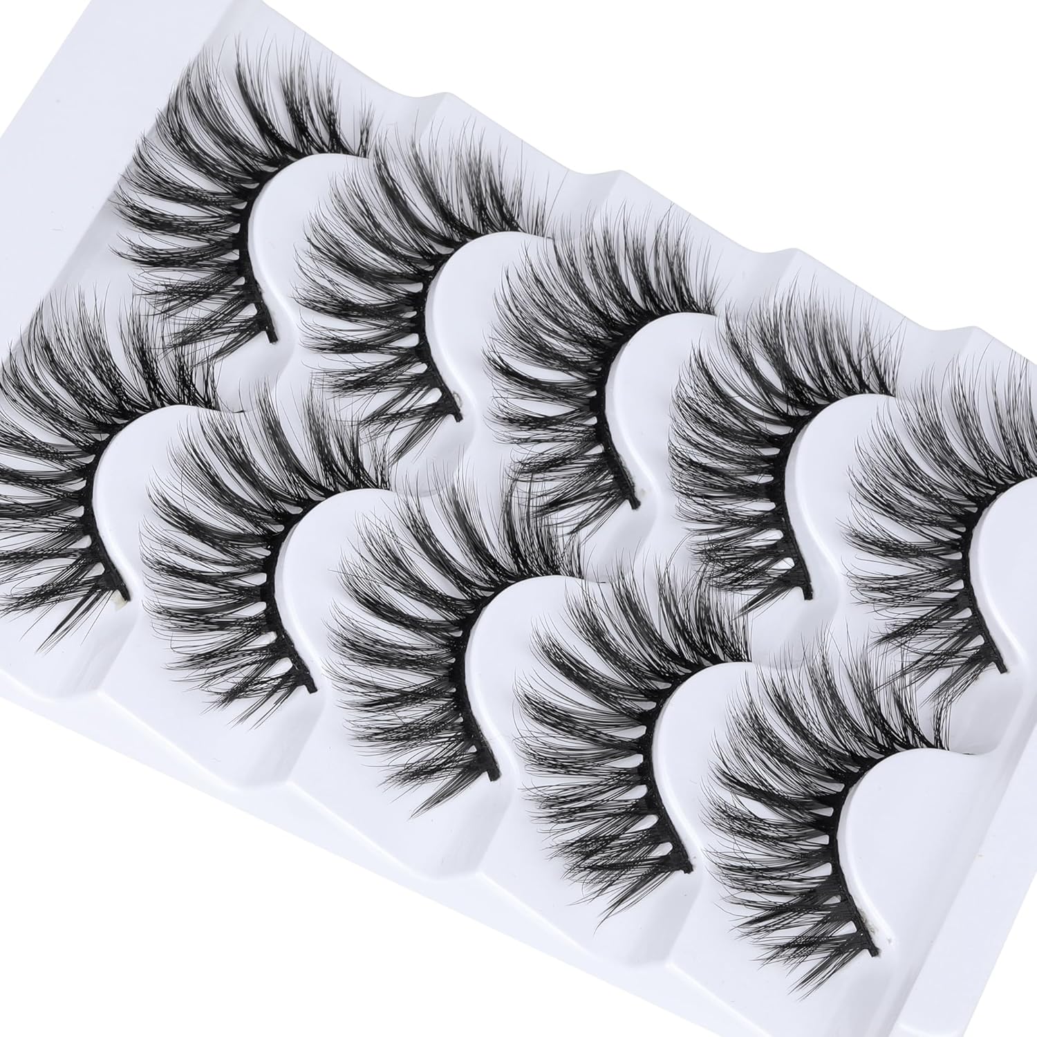 JIMIRE False Eyelashes Wispy Fluffy Round Eye Lashes 17mm Faux Mink Lashes 5D Mink Eyelashes 5 Pairs Pack