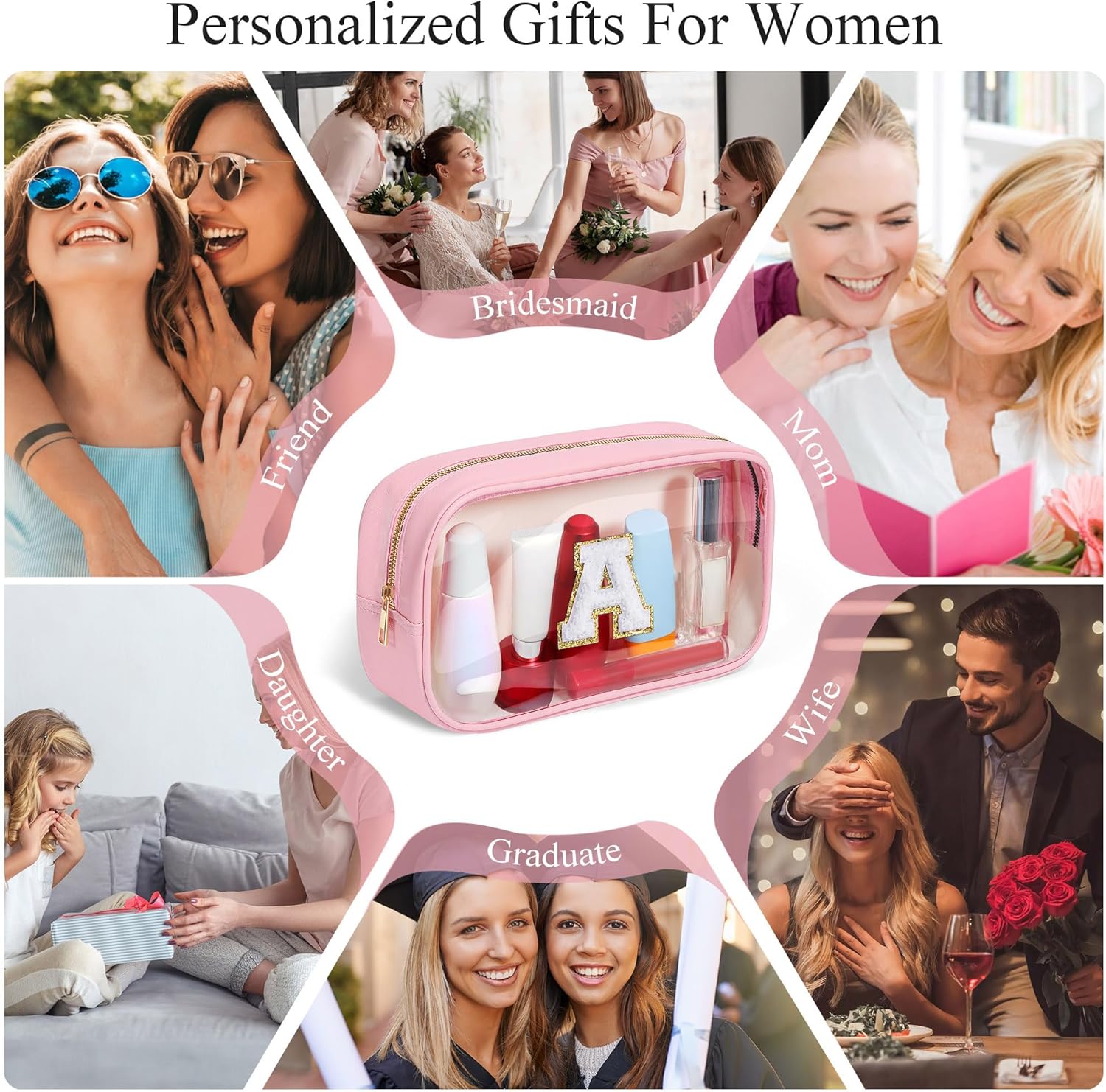 YOOLIFE Initial Travel Makeup Bag Pouch, Clear Toiletry Bag for Women Travel Accessories Cosmetic Bag Skin Care for Teen Make Up Bags Birthday Gifts for Women Unique Teacher Mom Friends Gifts Pink N