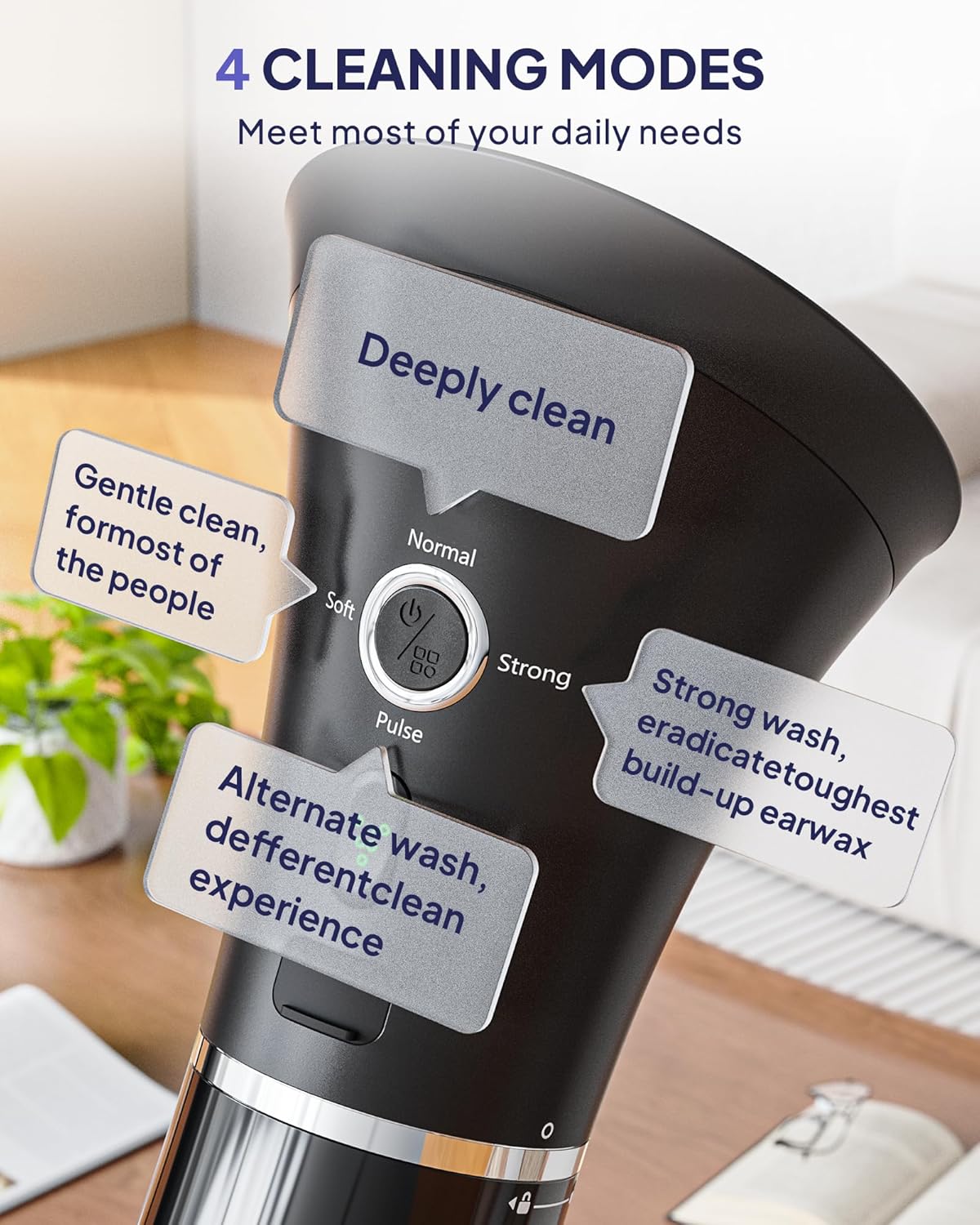 - Effective Four Water Pressure Settings: This triple jet ear cleaner offers four pressure levels to suit your needs. Simply press the Power/Mode button to select the intensity