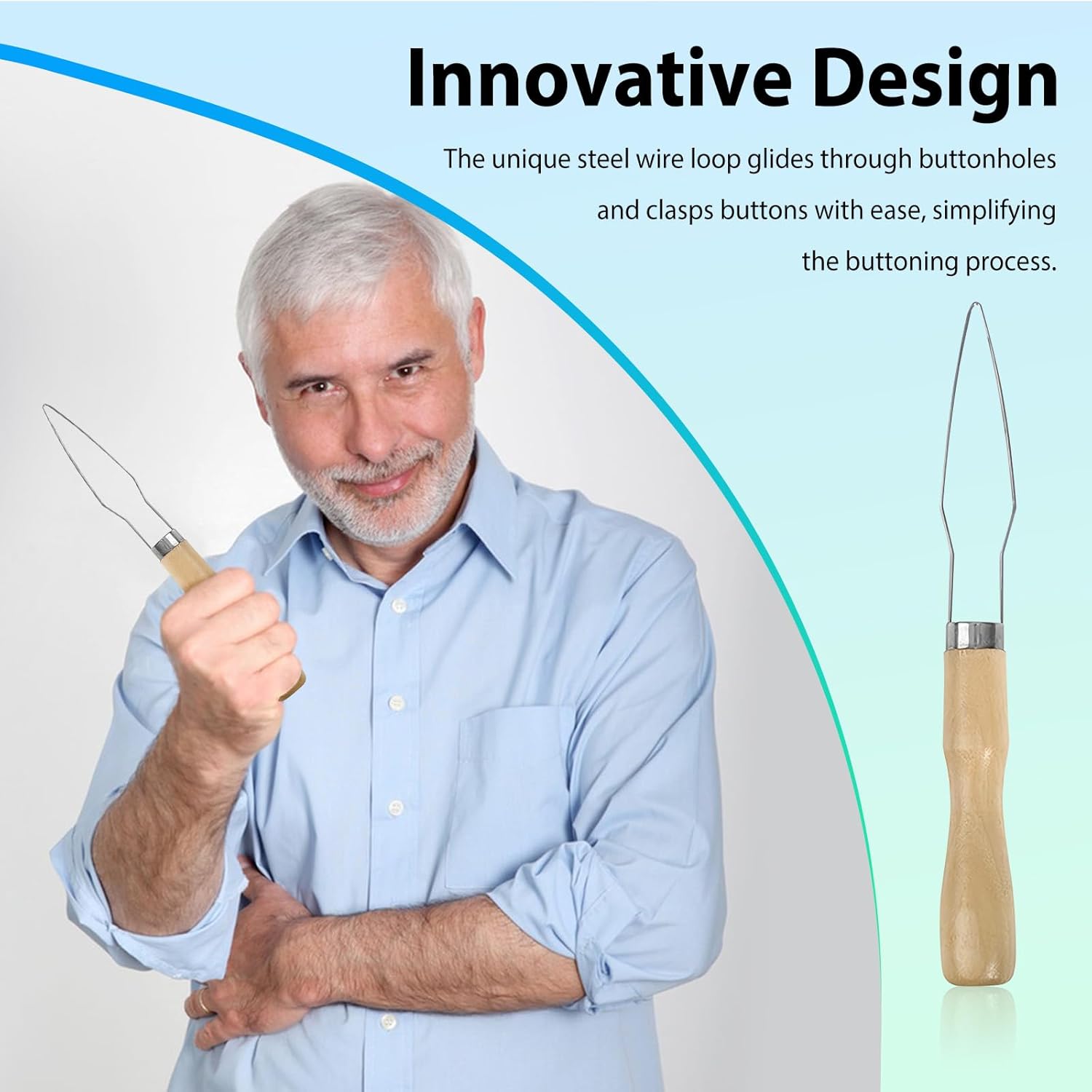 - Innovative Design: The unique steel wire loop glides through buttonholes and clasps buttons with ease, simplifying the buttoning process.