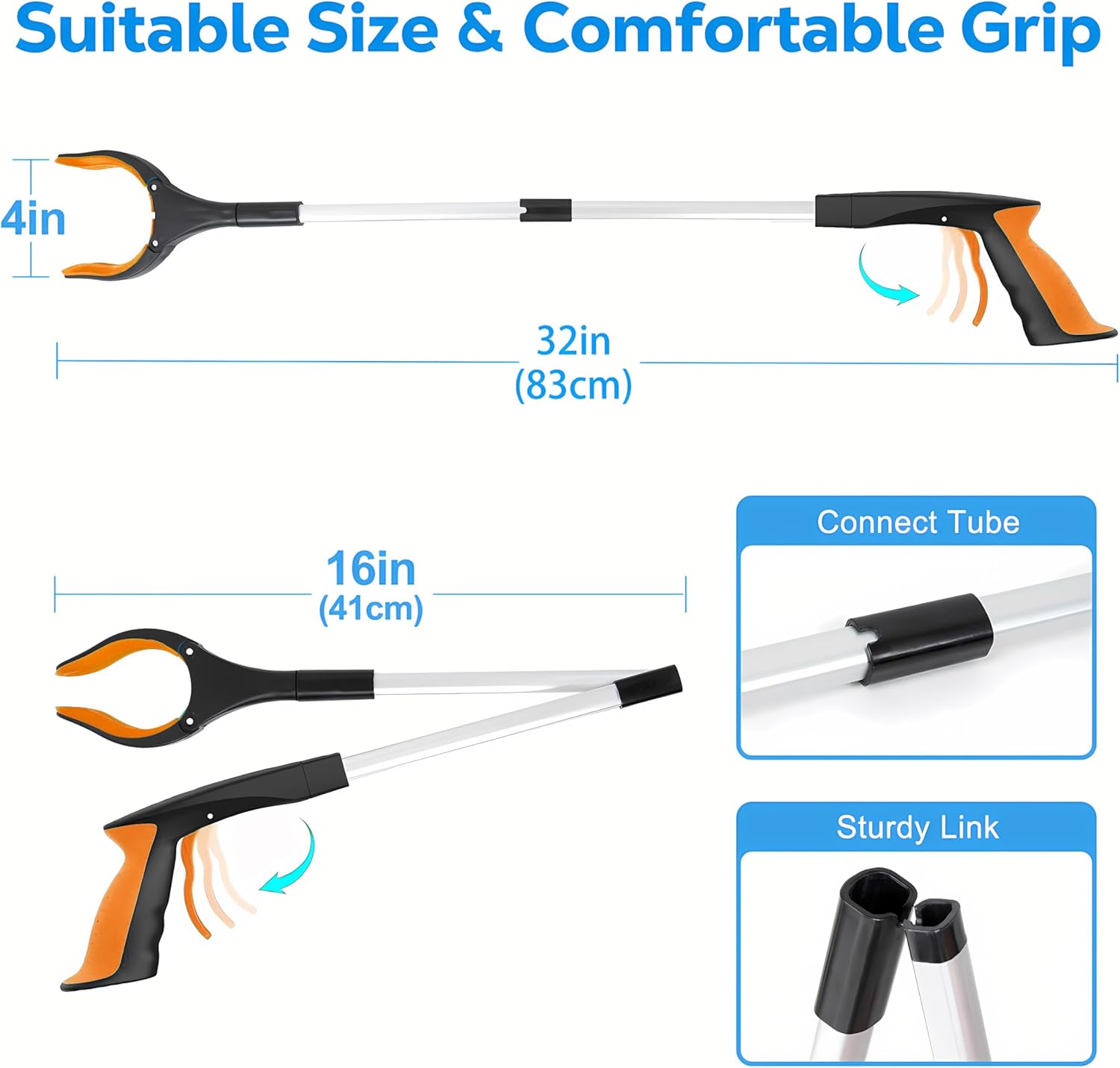 Grabber Reacher Tool - 32” Extra Long Foldable Gripper and Reaching Tool - Heavy Duty Pick Up Stick Grabbers for Seniors, Trash, Surgery Recovery Must Haves Gifts (Orange)