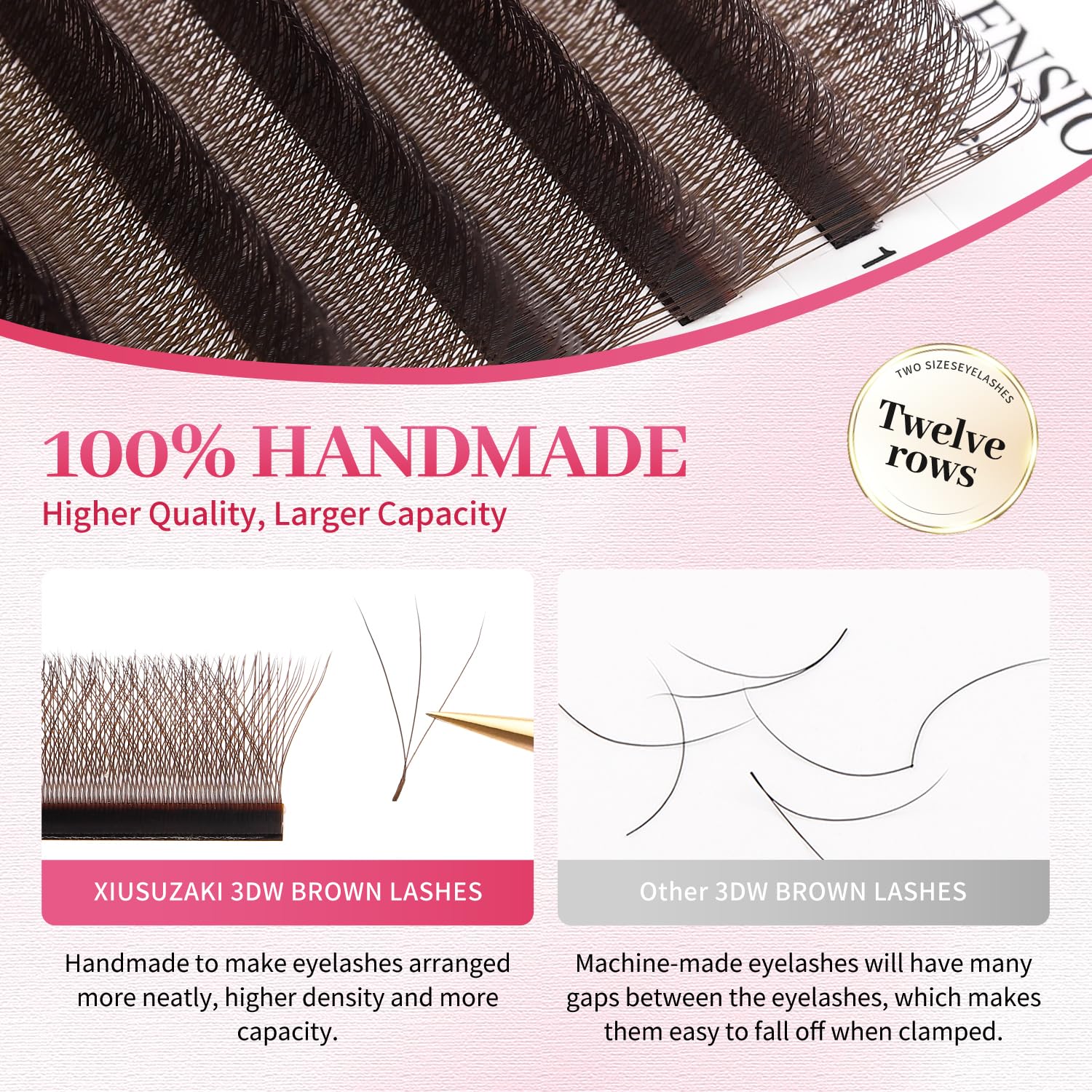 W Lash Extensions Brown 4D Eyelash Extensions W Shape 0.07mm Thickness C Curl Mix 8-15mm Premade Fans Lashes Colored Lash Extension Volume Lashes Individual Lashes(W-Brown-4D-0.07-C,8-15mm)
