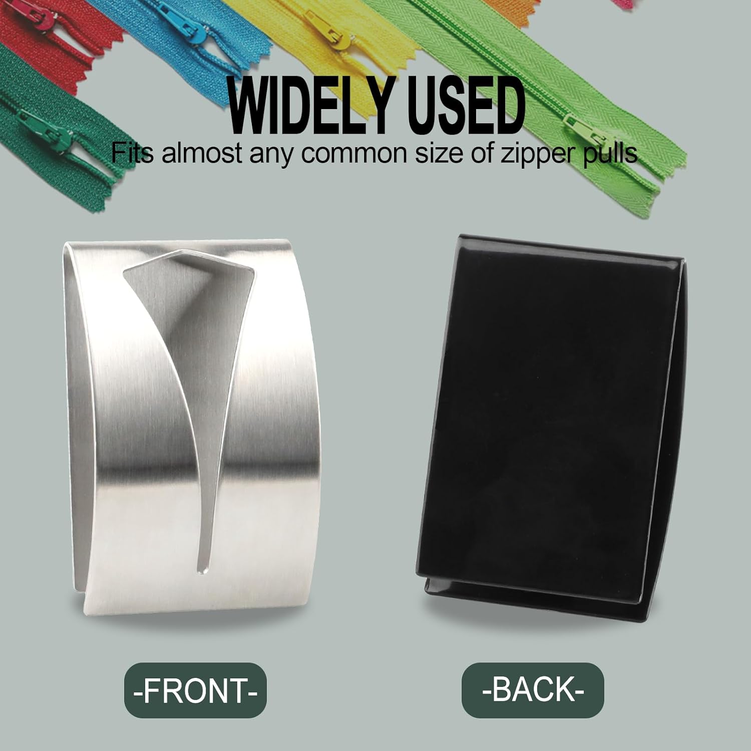 SINSETU Zipper Jig Tool, Quick Zipper Jig Sliders for Zipper Pulls, Stainess Steel Zipper Puller Helper for Pants, Dresses(2 Pack), Black, Silver, 2CLLTX