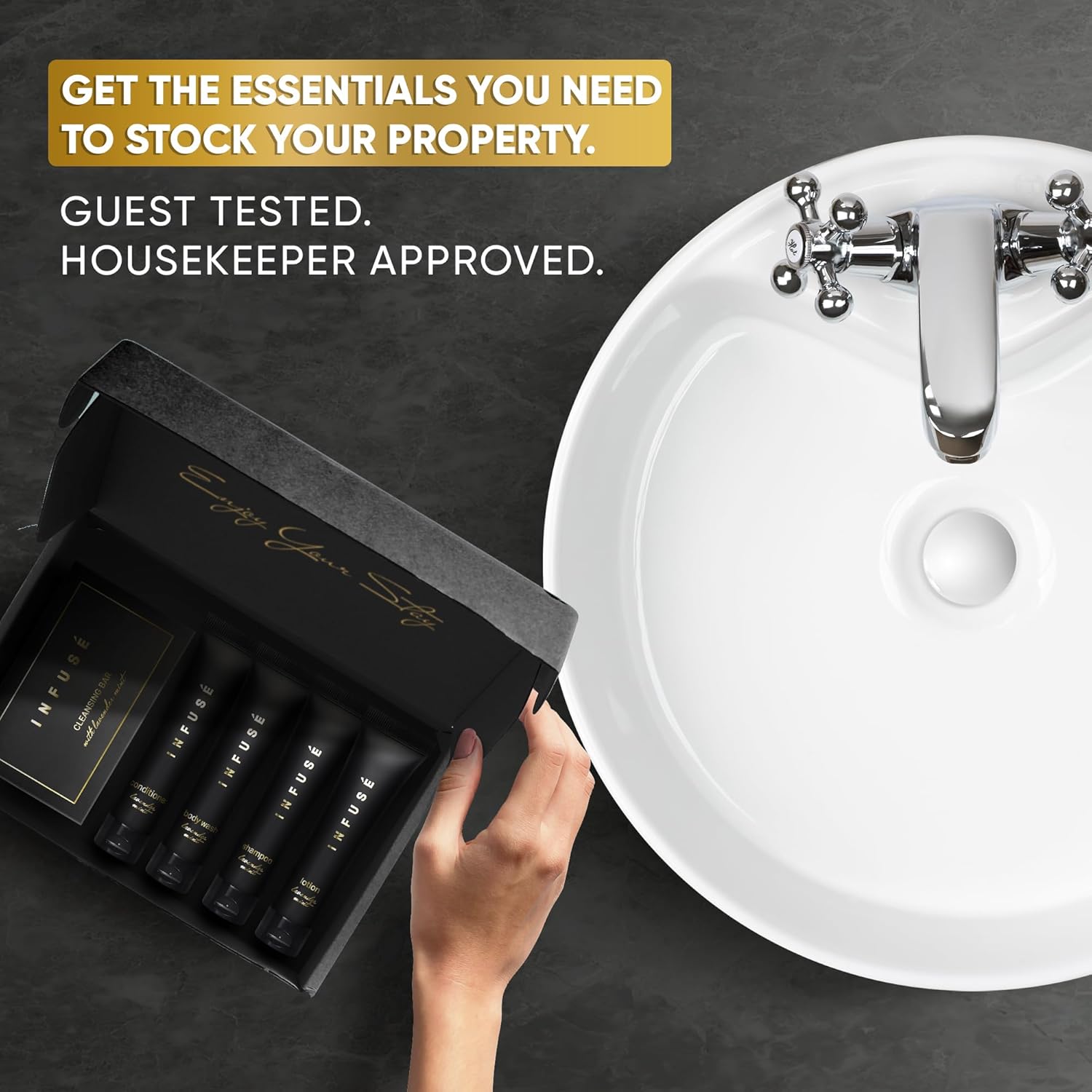 - HOTEL AMENITIES: We offer luxury bulk travel size toiletries enriched with pure ingredients that are good for your skin. Each product is conveniently packaged for hotels, gyms, homeless care package supplies, vacation rentals, guest rooms, cruise ships, and more! Our bulk soap sets are Airbnb essentials!
