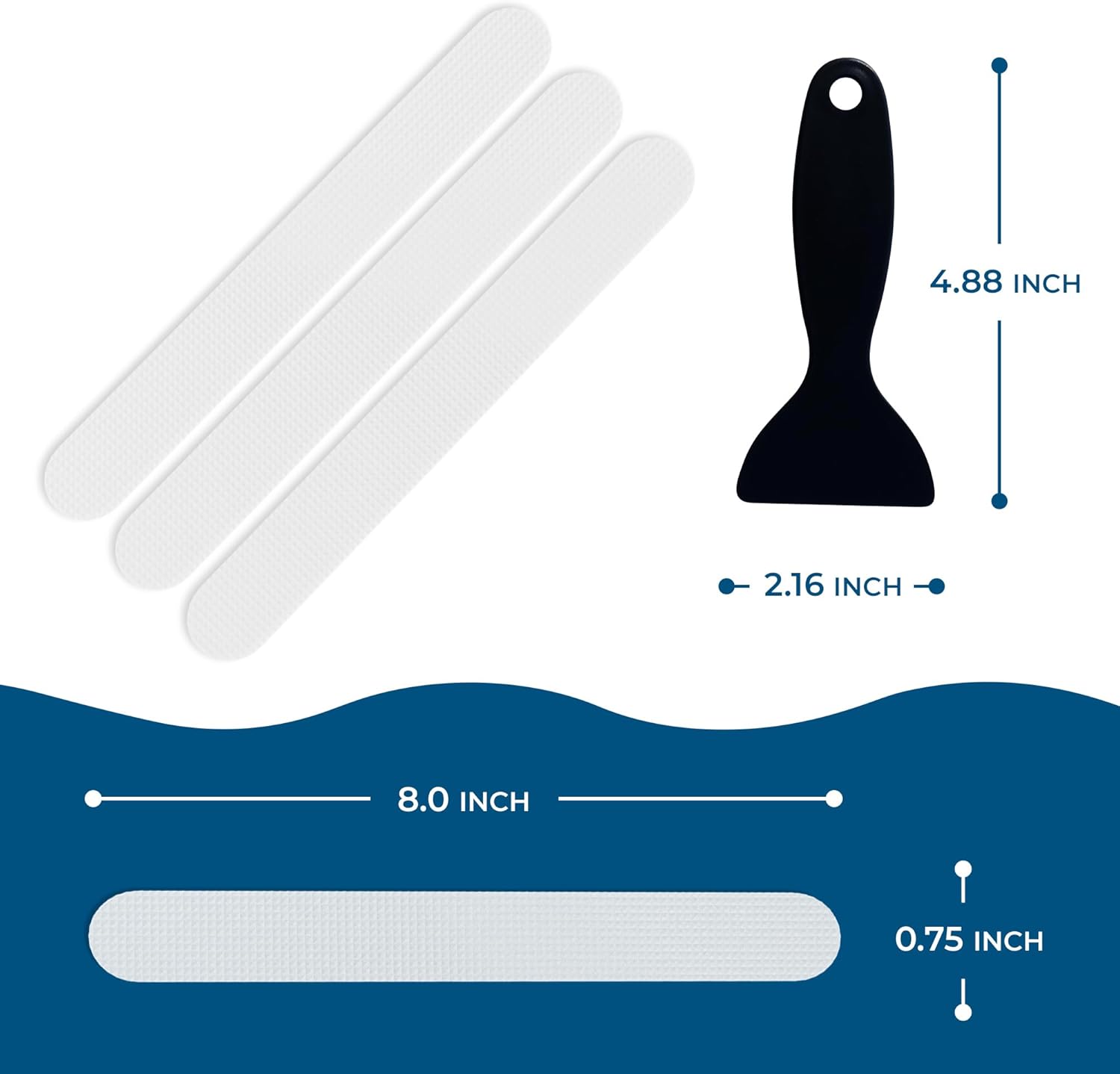 - Versatile & Comprehensive Coverage - With 24 clear strips (0.75”x8”) included in each package, you can cover most of your bathtub or shower surface, drastically reducing the risk of slips. Additionally, these versatile strips are perfect for use on stairs and boats, providing extra safety wherever needed