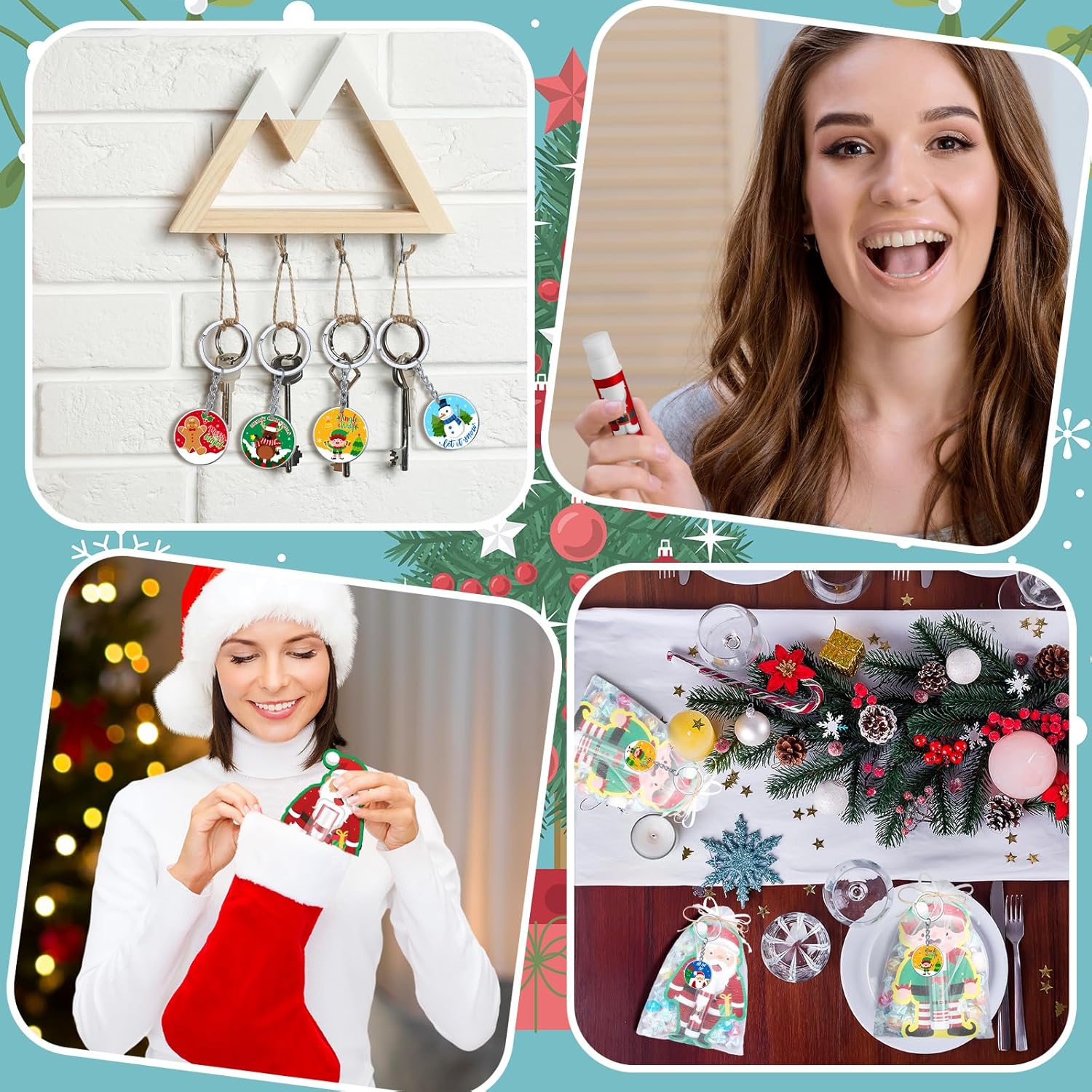 - Christmas Theme Design: our Christmas moisturizing lip balms and packaging cards are designed into 5 patterns, namely Santa Claus, snowman, elk, elf and other, also has the matching designs keychains with these 5 patterns, very suitable as Christmas party gifts