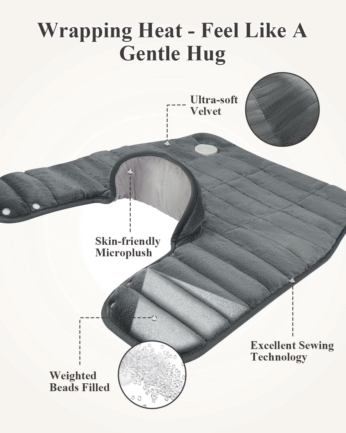 - Experience Enhanced Comfort with Extended Back Heating and Double Snap: The SNUGYOURT heating pad features an extended 24"x23" back design that targets your neck, shoulders, and upper back, offering comprehensive relaxation and pain relief. The adjustable double snap button allows you to easily customize the collar size for a better fit (no need to fasten both buttons). This heating pad is perfect for gifting and expressing your warmest love on Christmas, Mother's Day, Father's Day