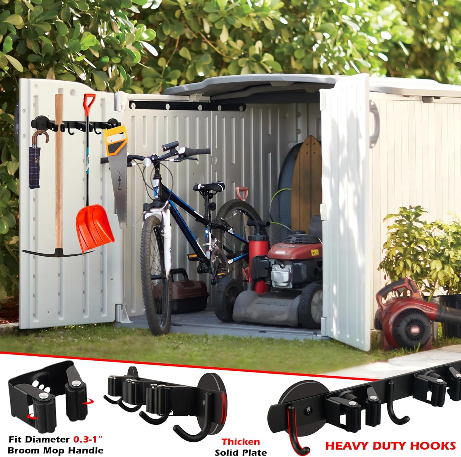 - Easy to Access Broom Racks:Always keep brooms and mops close your hand!Benefiting from a triangle buckle, the sturdy and handy mop broom holder can adjust size automatically based on the different thicknesses of the handles to keep your mops or brooms in place and guards them against falling off