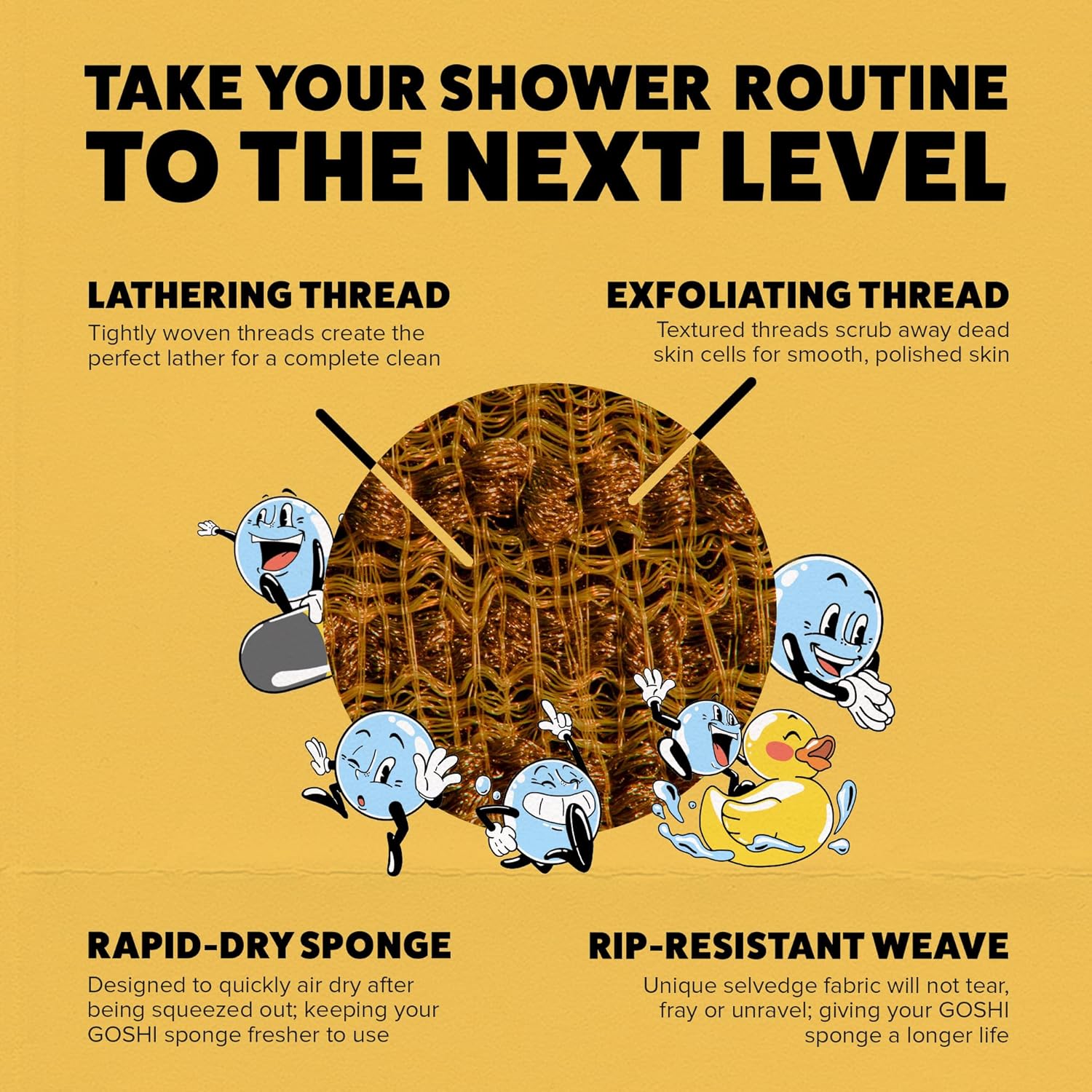 - The Softest and Cleanest You’ll Ever Feel: Introducing an exfoliating shower sponge for a refreshing body exfoliation experience made easy. Crafted in the finest Japanese textile mills, the GOSHI exfoliating shower sponge is woven with subtly contrasting fibers that both scrub your skin clear and wash your body clean.