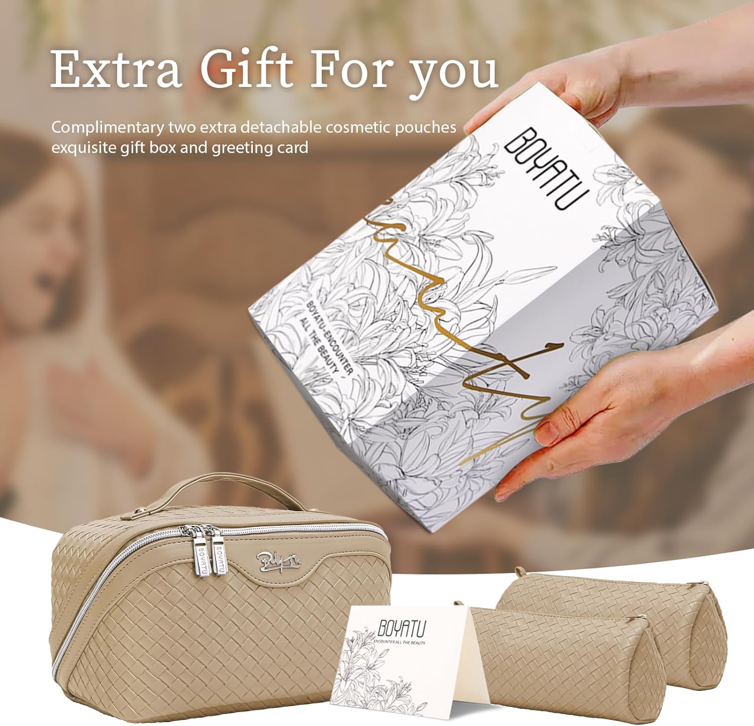 - Exquisite packaging: This travel make up bags for women comes beautifully packaged in an exquisite gift box, with a thoughtfully designed greeting card. It will be a great gift for ladies on Valentine's Day, Mother's Day, Birthdays, Christmas,Thanksgiving Day, Anniversary Day and more.