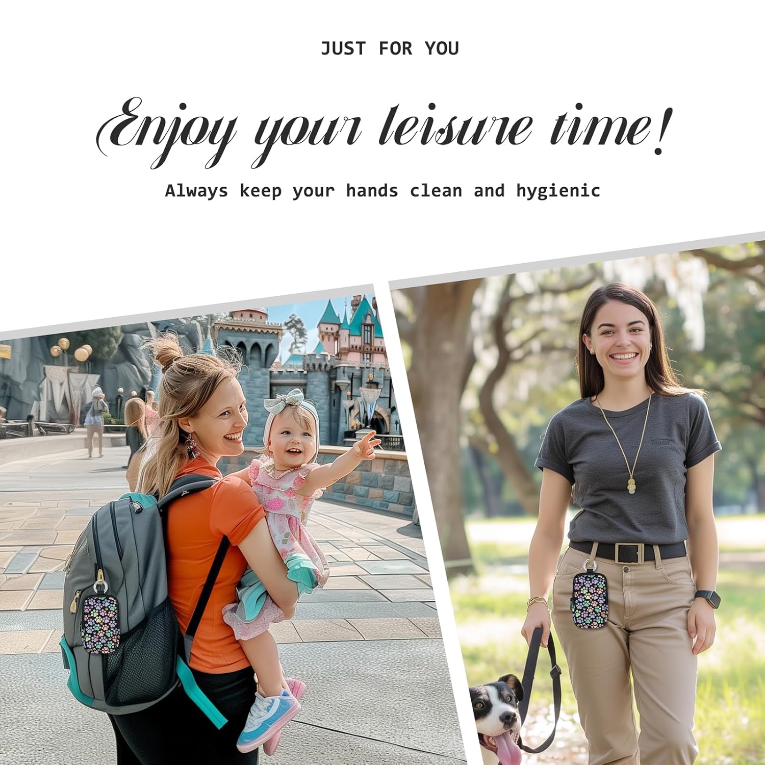 - Convenient Use: Smooth zipper and snap hook allow easy attachment to backpacks, belts or keychains. Keep your hand sanitizer accessible at all times, ensuring clean and hygienic hands. Compact size fits effortlessly in pockets or bags