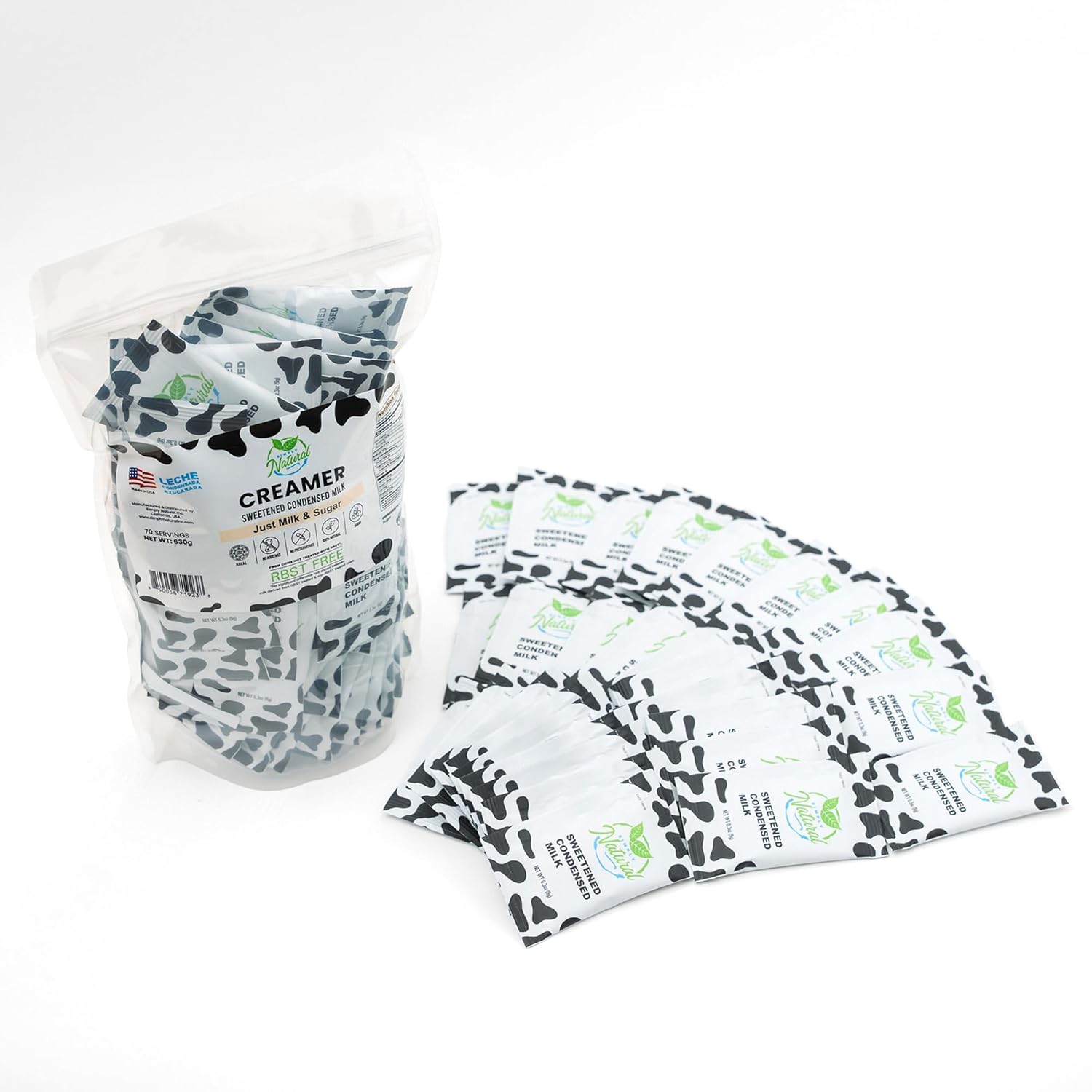 Simply Natural Sweetened Condensed Milk Creamer Single-Serve 9 grams sachet, All Natural Coffee/Tea Creamer (70 sachets bag, Milk Flavor)