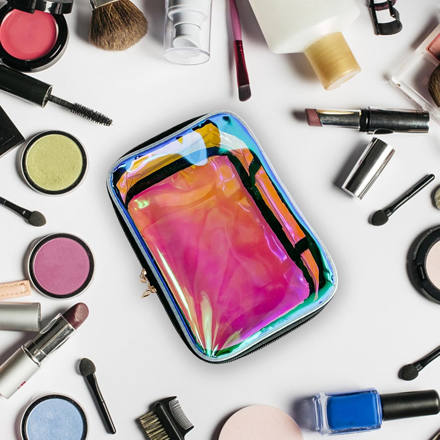 - 🌷【Wide Range of Uses】Our transparent holographic cosmetic bag can not only be used as a storage bag,waterproof bag,gift bag,frequently used item bag,but also can be used to store cash,glasses,keys,portable batteries,etc.This waterproof and dustproof tote makeup bag keeps everything safe and prevents liquid leaks