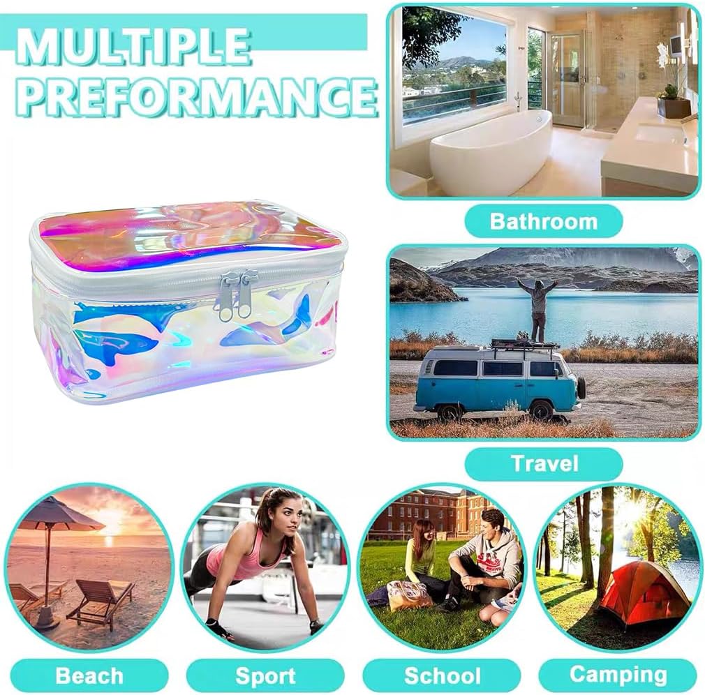 - 🌷【Wide Range of Uses】Our transparent holographic cosmetic bag can not only be used as a storage bag,waterproof bag,gift bag,frequently used item bag,but also can be used to store cash,glasses,keys,portable batteries,etc.This waterproof and dustproof tote makeup bag keeps everything safe and prevents liquid leaks