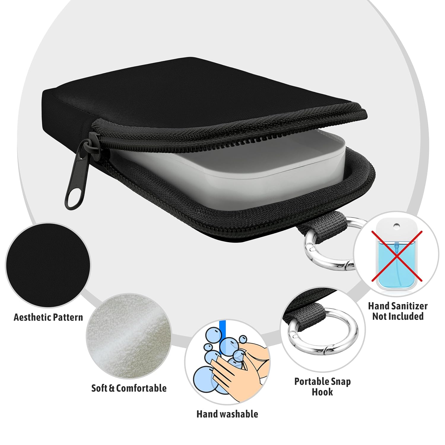 Hand Sanitizer Spray Case, Hand Sanitizer Holder Zippered Pouch, Cute Fashion Accessory with Snap Hook for Glow Mist and Power Mist 1FL OZ, Black