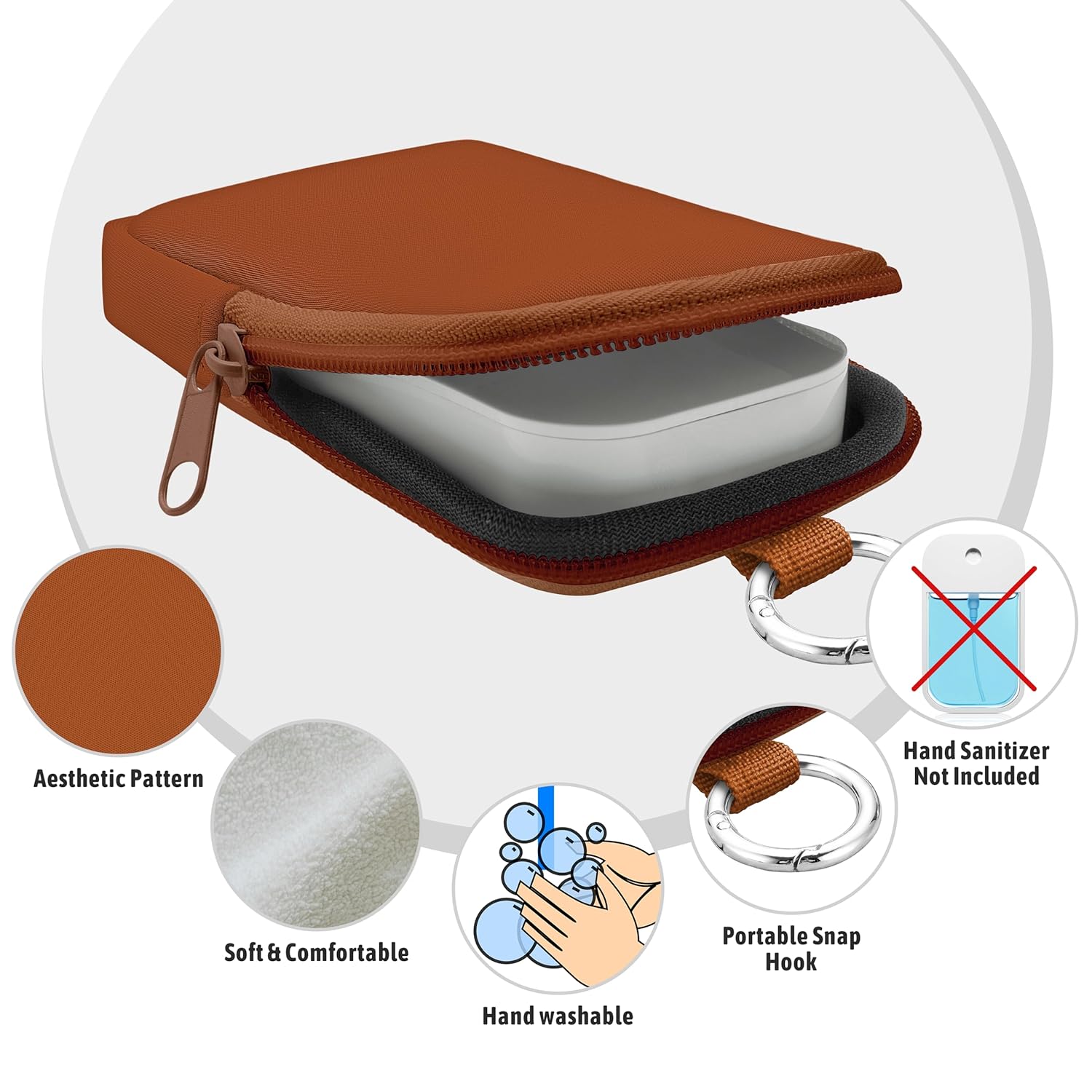 Hand Sanitizer Spray Case, Hand Sanitizer Holder Zippered Pouch, Cute Fashion Accessory with Snap Hook for Glow Mist and Power Mist 1FL OZ, Caramel