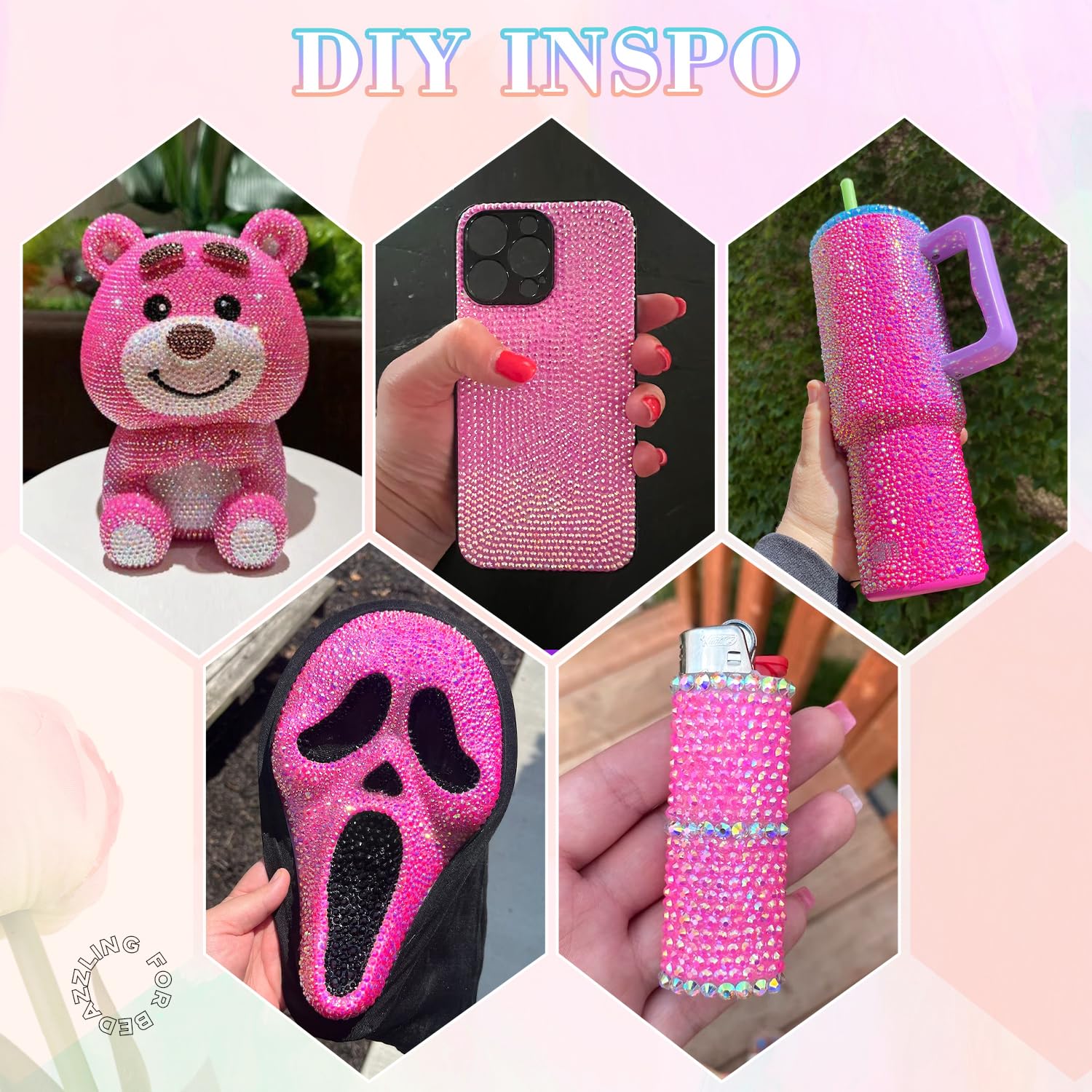- PACKAGE CONTENT -- Include 1 box with 24 grids, featuring a variety of sizes, approx. 25000 pcs bling-out resin rhinestones (Hot Pink AB). 1 tweezers and 1 pickup pen are included for easily picking up of rhinestones