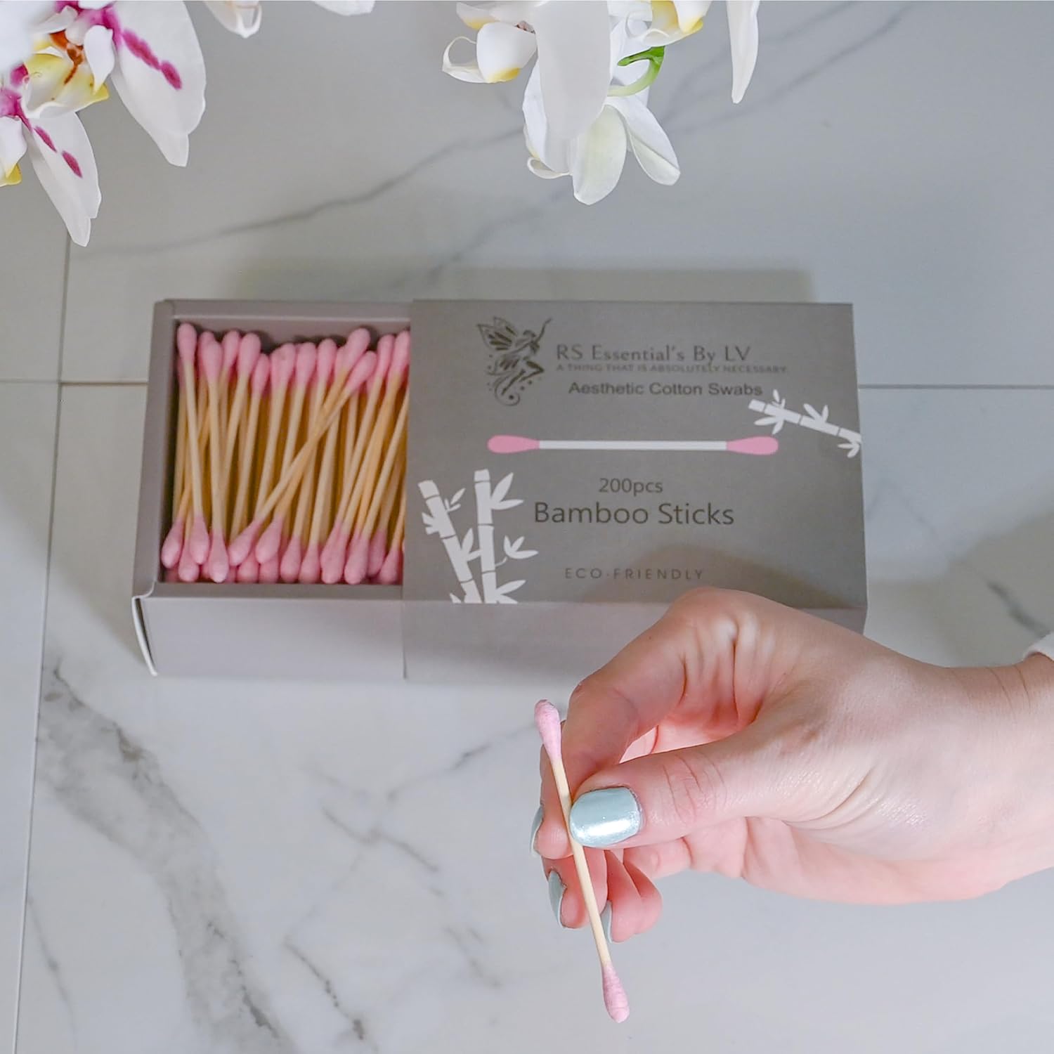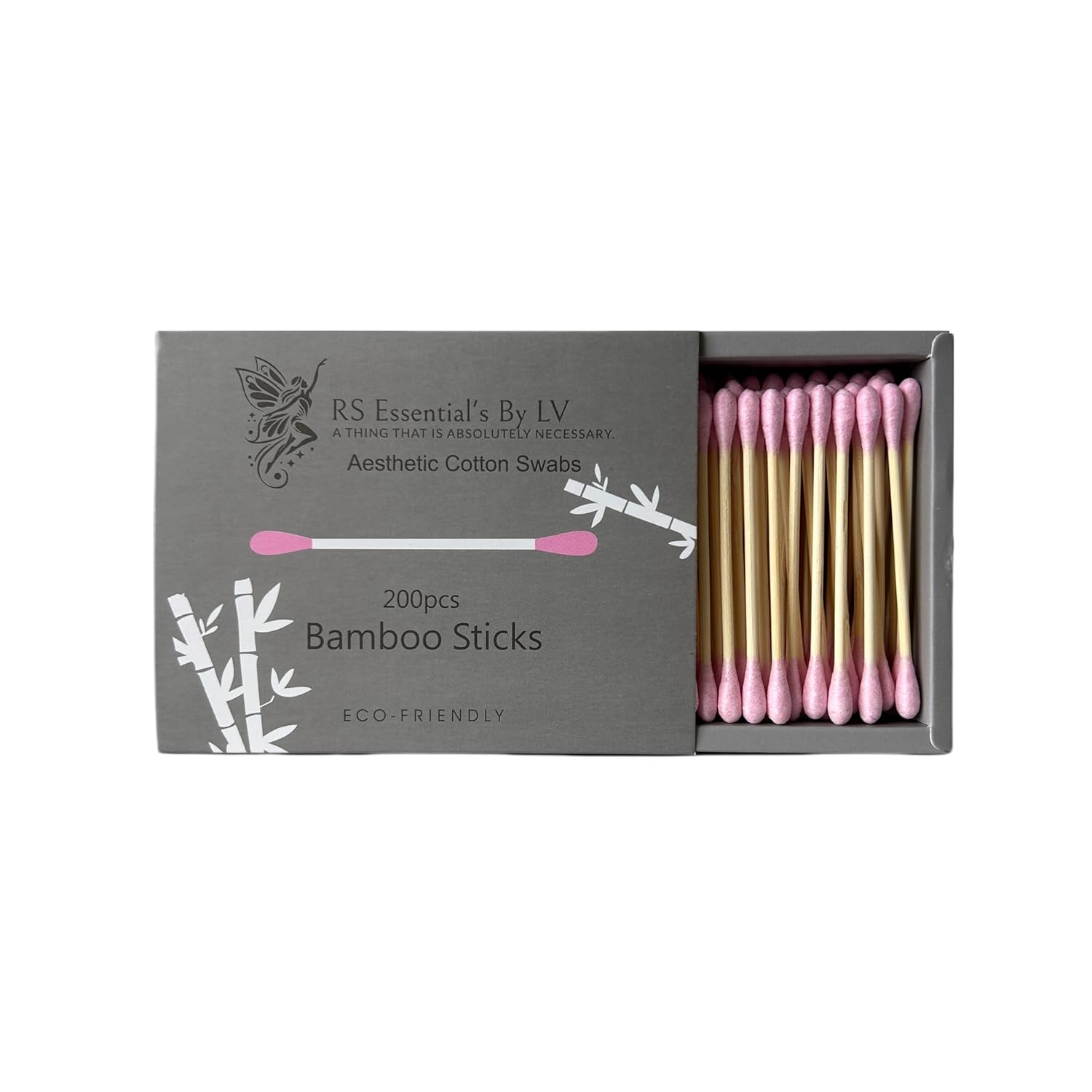 RS ESSENTIAL'S BY LV: Aesthetic Cotton Swabs Sticks Ear Swabs Bamboo swabs 200 Count Cotton Buds In 5 Colorful Colors (Pink)