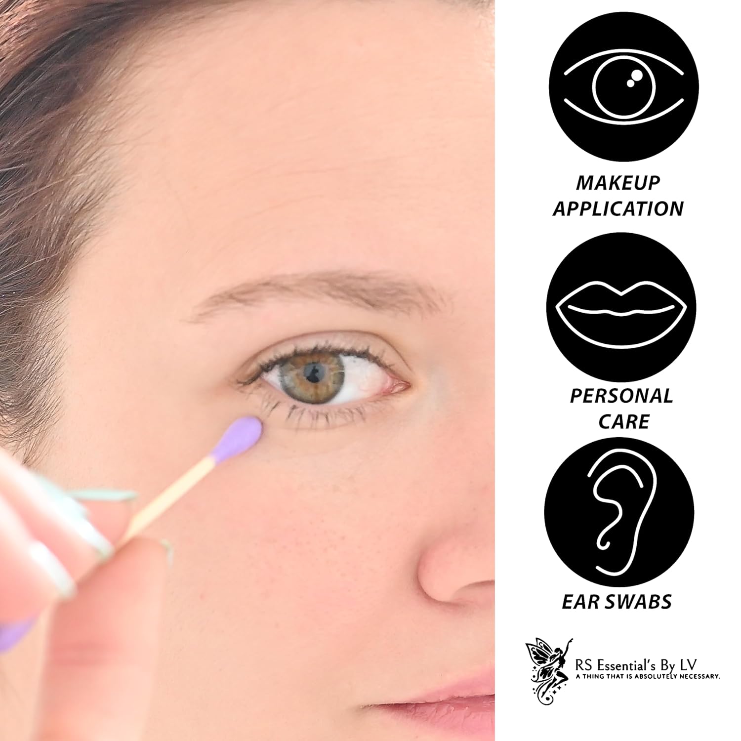 - Vibrant Multi-Color Swabs: These cotton swabs come in a five beautiful colors, adding a touch of elegance to your daily routine. Perfect for clean beauty enthusiasts who seek precision for makeup application or ear swabs. perfect for beauty, personal care, use to apply, clean, health, blend, touch up, remove beauty products. Super versatile. Healthy skin. Happy skin.