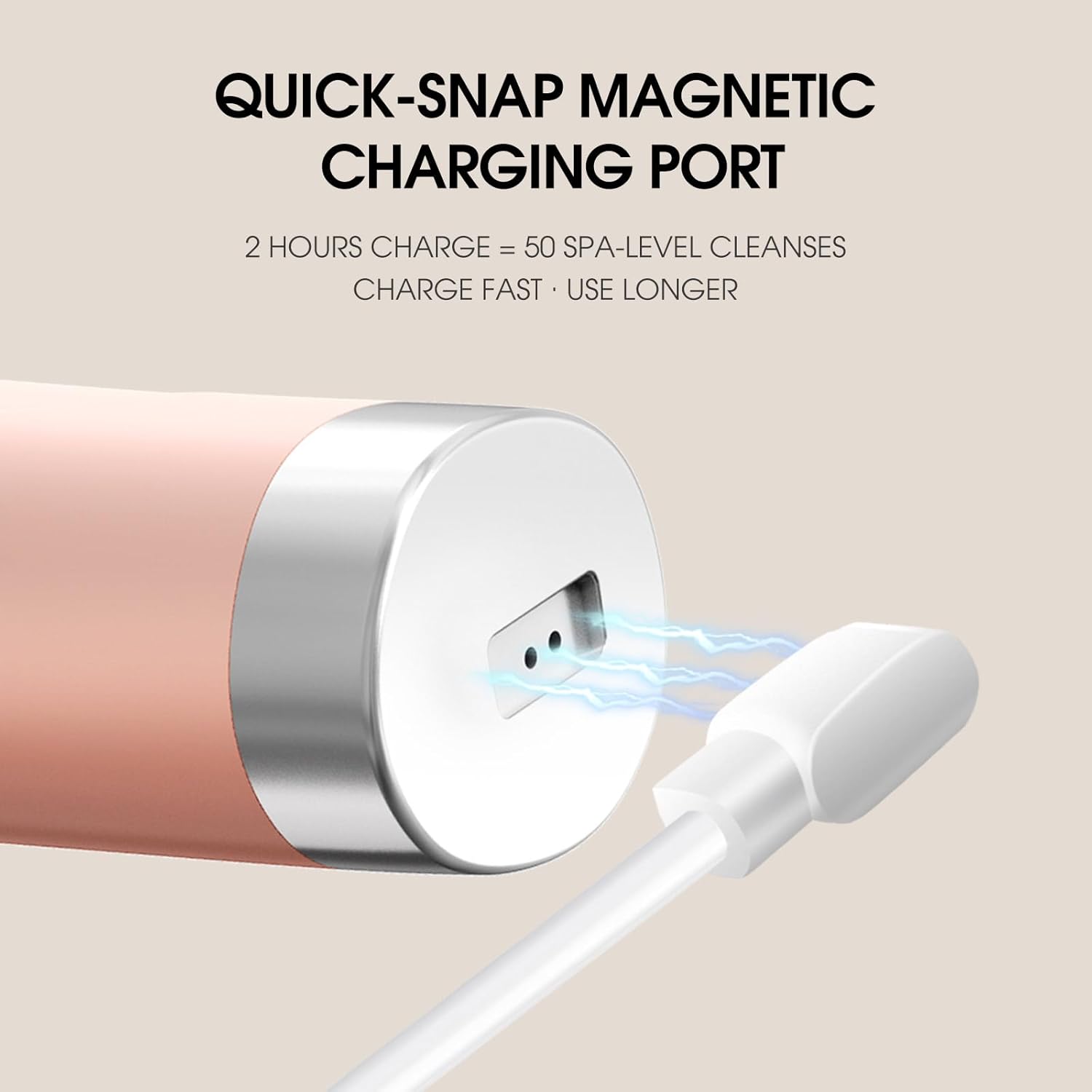 - IPX7 WATERPROOF DESIGN -This waterproof electric facial cleansing brush (IPX7-rated) is safe for use during showers or while washing your face. Its fully sealed construction allows you to rinse the entire device under warm water with mild soap for easy cleaning. After use, simply dry and store in a cool, dry place. NOTE: For optimal performance and longevity, avoid prolonged submersion in water when not in use.