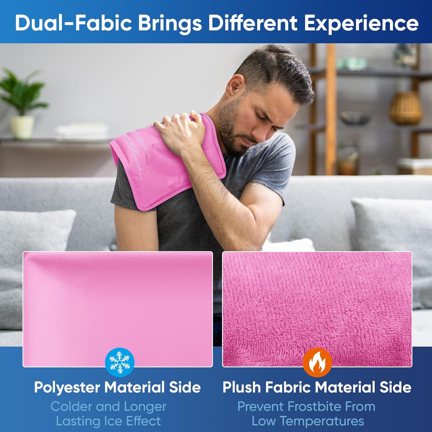 APEXUP Gel Ice Packs for Injuries Reusable, Flexible Double Sided Cold Packs for Injuries, Ice Pack for Knee, Shoulder, Back, Hip, Leg, Arm (Pink, L, 1PK)
