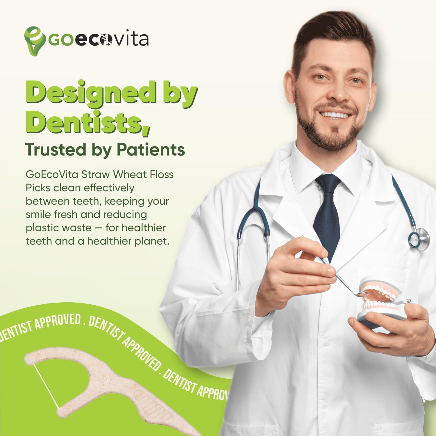 Biodegradable Floss Picks (Unflavored) - Natural Straw Wheat Handle | Thin & Durable Thread for Tight Gaps! | Dental Flossers for Adults | Gentle on Gums & Teeth | Eco Friendly, Vegan (100 Pack)