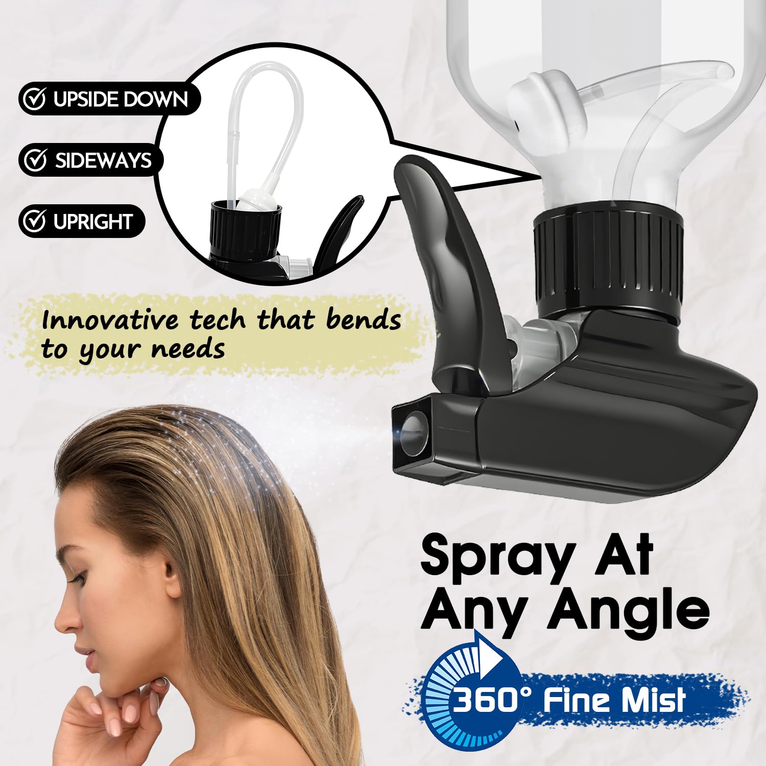 - 【Spray from Any Angle】- You will get 1pc clear + 1pc green plastic spray bottle for daily use. Our spray bottles allow for upside-down, sideways, and upright spraying, ensuring every drop is used efficiently. The straw is equipped with a gravity ball to facilitate multi angle spray, such as the scene where the bottle needs to be tilted or inverted. You can refill liquid when the liquid level is low, or adjust the position of gravity ball by shaking the bottle to obtain a better spray effect. The combination of the trigger sprayer and gravity ball is also suitable for 500ml bottles.