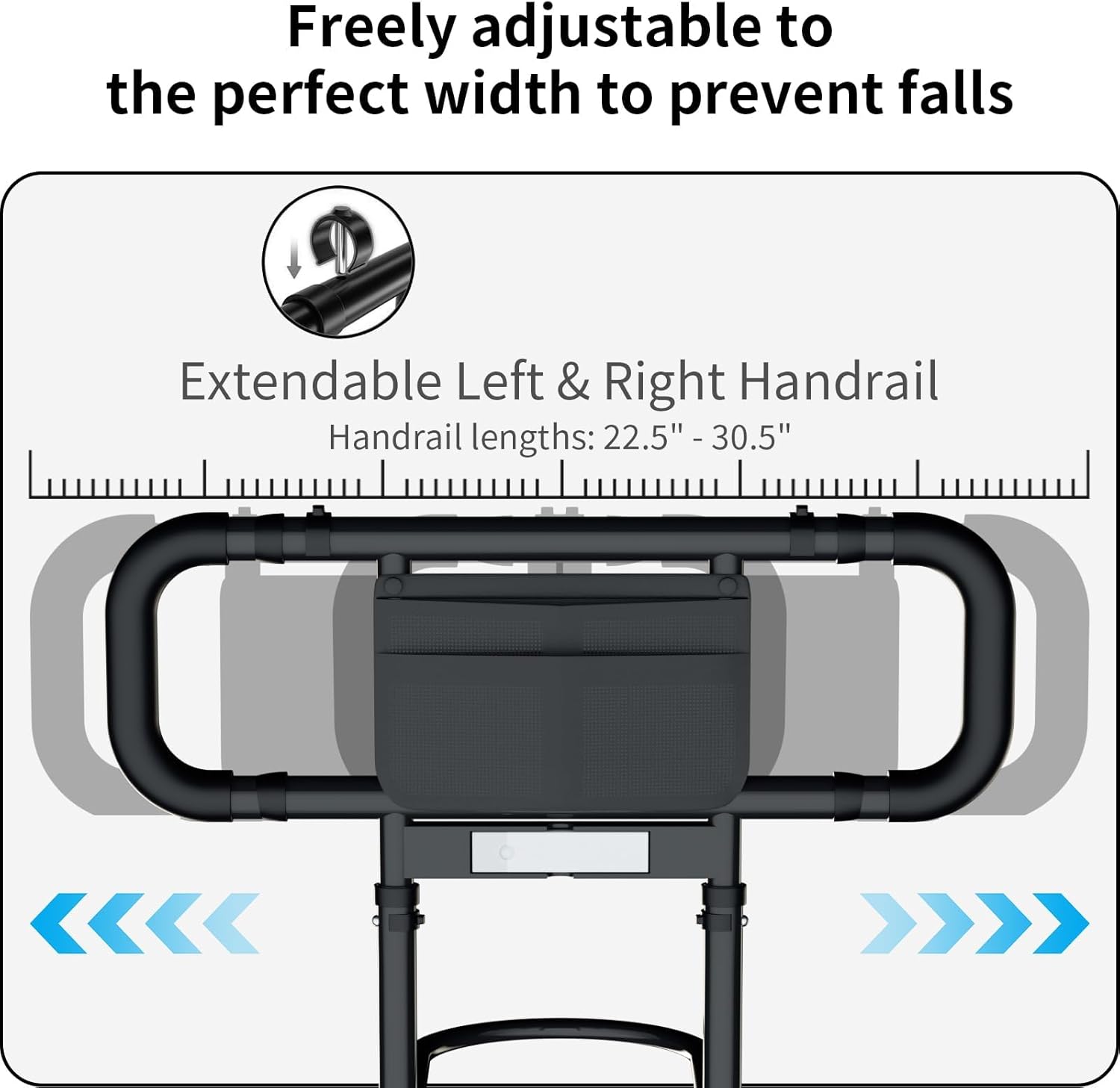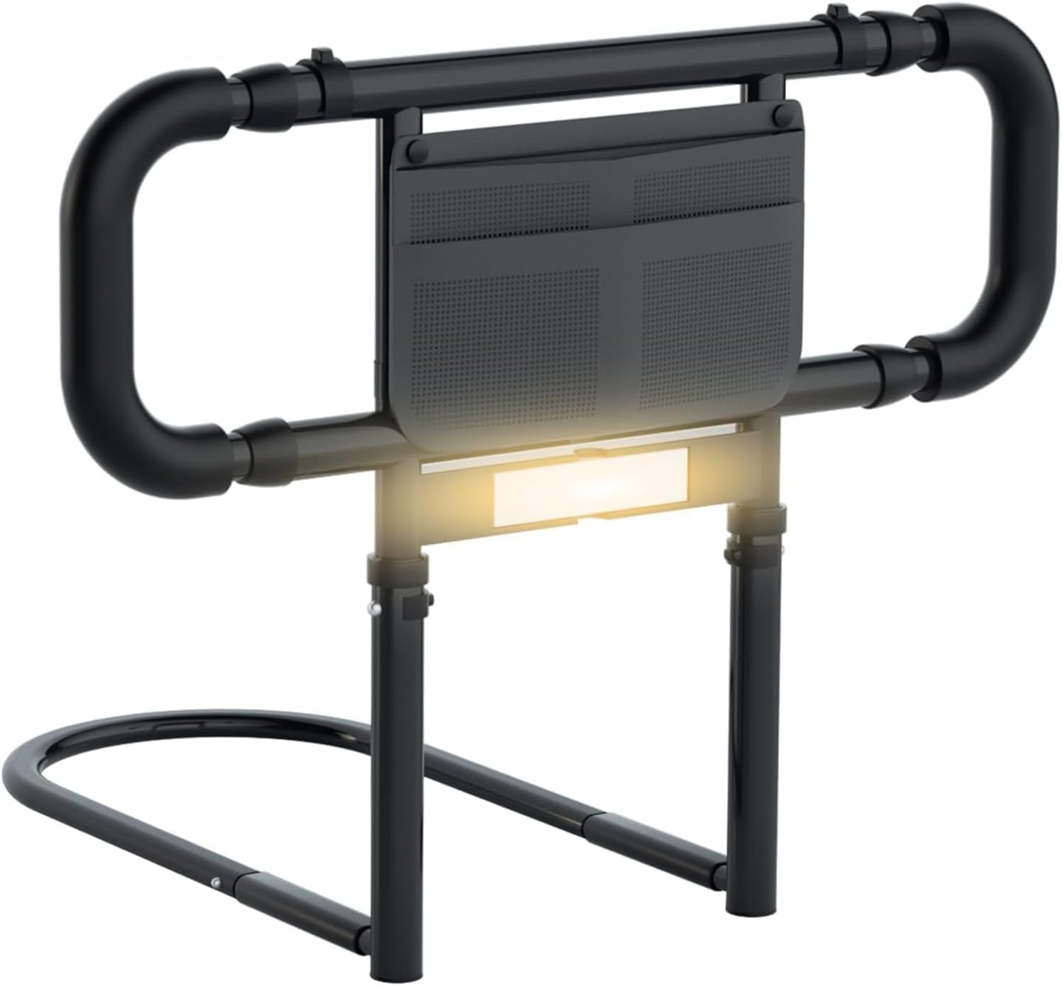 Bed Rails for Elderly Adults Safety: Elderly Assistance Products with Adjustable Double Grips, Storage Pocket, Motion Sensor Light, Items for Elderly Bed Rail, Can Withstand 300lb(Black)