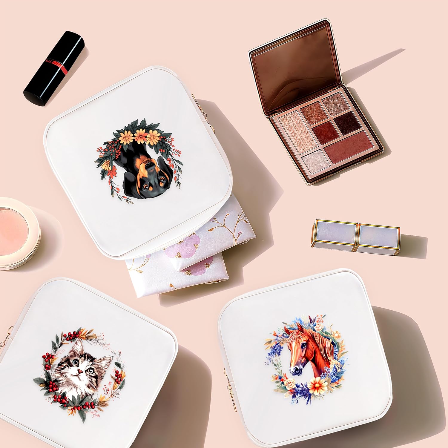 - Small cosmetic bag are great for storing daily small items such as lipstick, cushion cream, blush, earphones and jewelry; the portable makeup bag will be convenient for you to touch up your makeup anytime