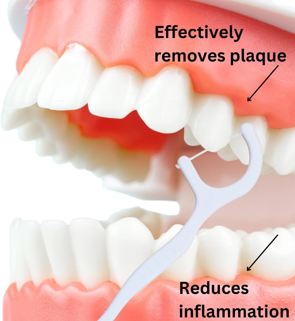 - 🦷 DUAL-PURPOSE ERGONOMIC DESIGN – Features double-string floss for a deeper clean between teeth and a built-in plaque remover. A convenient all-in-one tool for adults and children, promoting fresher breath and cleaner teeth.