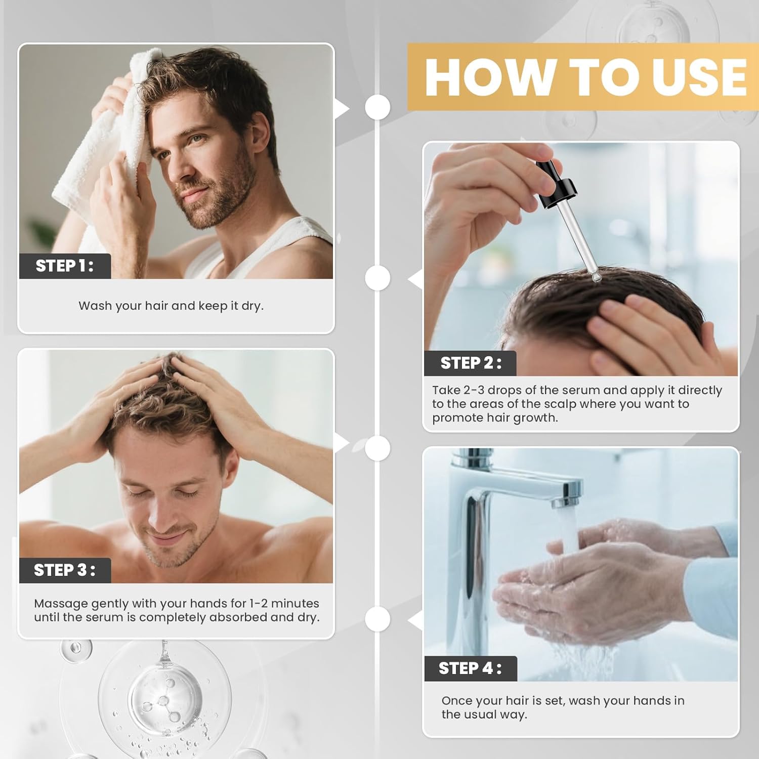 - Solution for hair thinning: Minoxidil for hair growth, minoxidil serum effectively alleviates hair loss by enhancing hair follicle activity. Hair drops for growth accurately controls hair growth serum uniform delivery, reducing hair breakage, thickening hair texture, and preventing fragile hair from being damaged. Topical minoxidil mild formula is suitable for sensitive scalp, and hair regrowth minoxidil provides hair regrowth care effects for male and female users