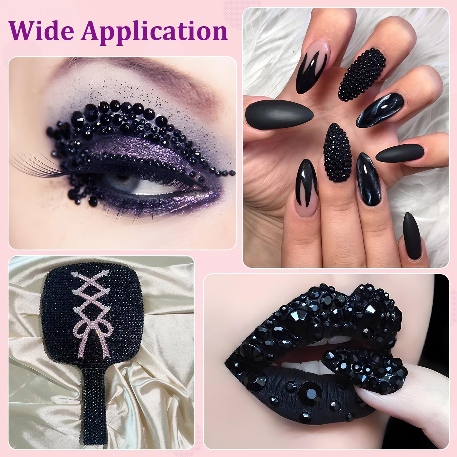 30000Pcs Resin Rhinestones for Bedazzling with Tweezers, Black Rhinestones for Crafting with B7000 Jewelry Glue for DIY Crafts Clothing Tumblers Shoes Fabric Nail Art