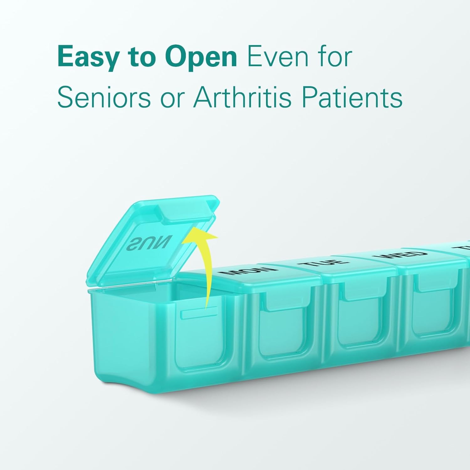 - User-Friendly Medication Organizer - The snap-shut lids of this pill holder stay closed tightly, would never pop up accidentally. Meanwhile the pill box 7 day is easy to open, really friendly to people with elderly, kids or arthritis