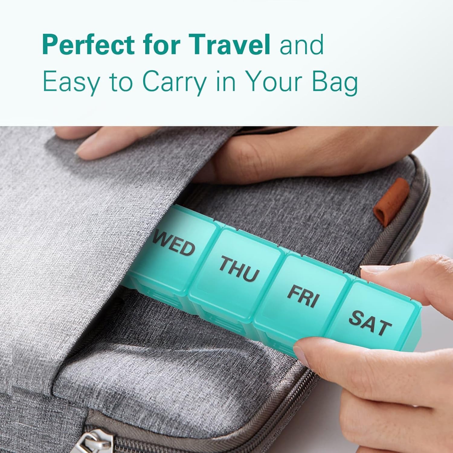 - Perfect for Travel - This oversize of the weekly pill organizer is 9.1'' L x 1.3'' W x 1.1'' H and has 7 individual compartments. Just toss this travel pill organizer with your entire week's worth of supplements into your bag, and you're good to go!
