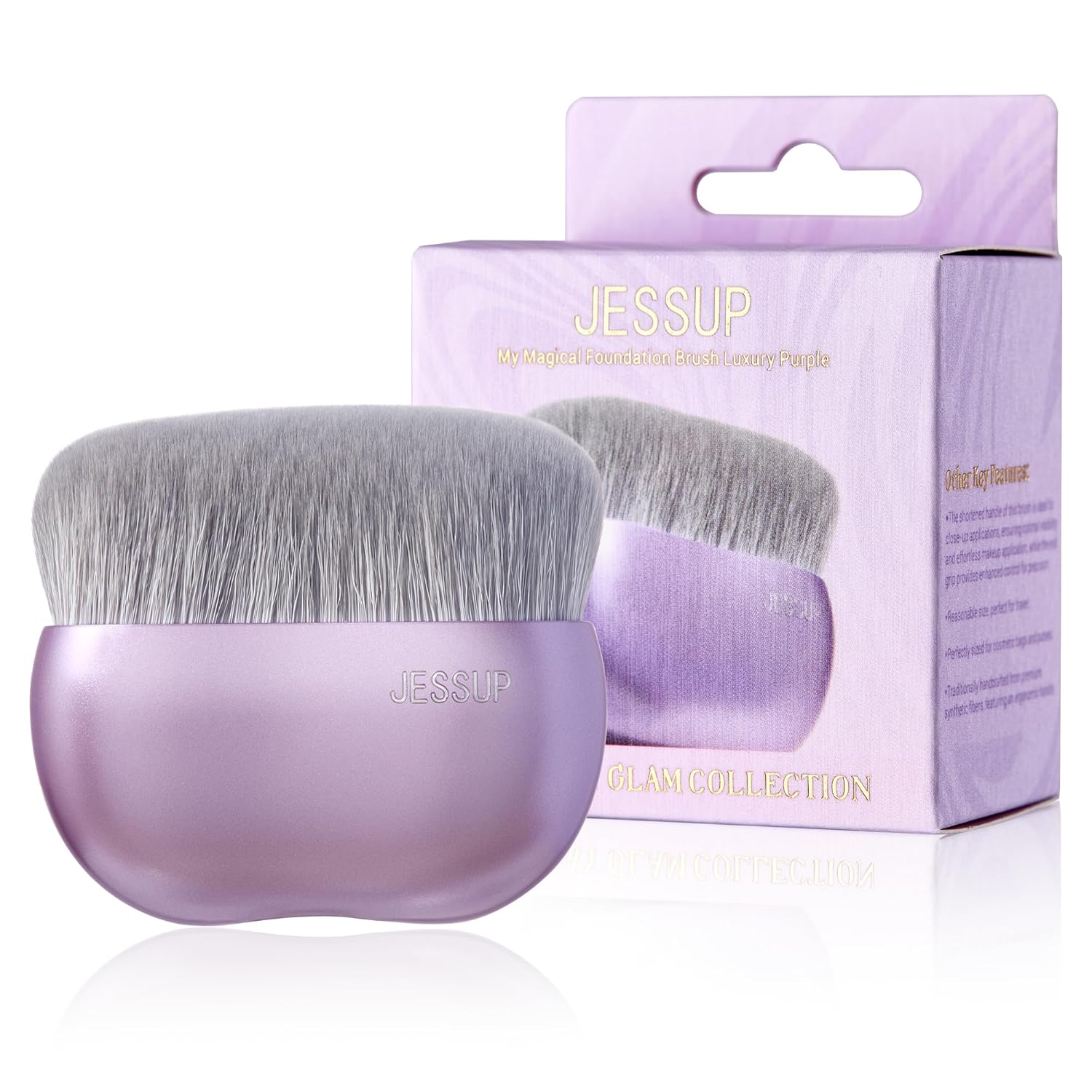 - Ergonomic & Precision Brush Head Design: Featuring Jessup's exclusive top-shape and comfort-crafted curves, this kabuki foundation brush is built for precision and ease. Its ergonomic handle allows for easy gripping and controlled application, while the flat top foundation brush design ensures smooth, even coverage, even in hard-to-reach areas like around the nose or under the eyes. Blending makeup has never felt so natural and effortless.