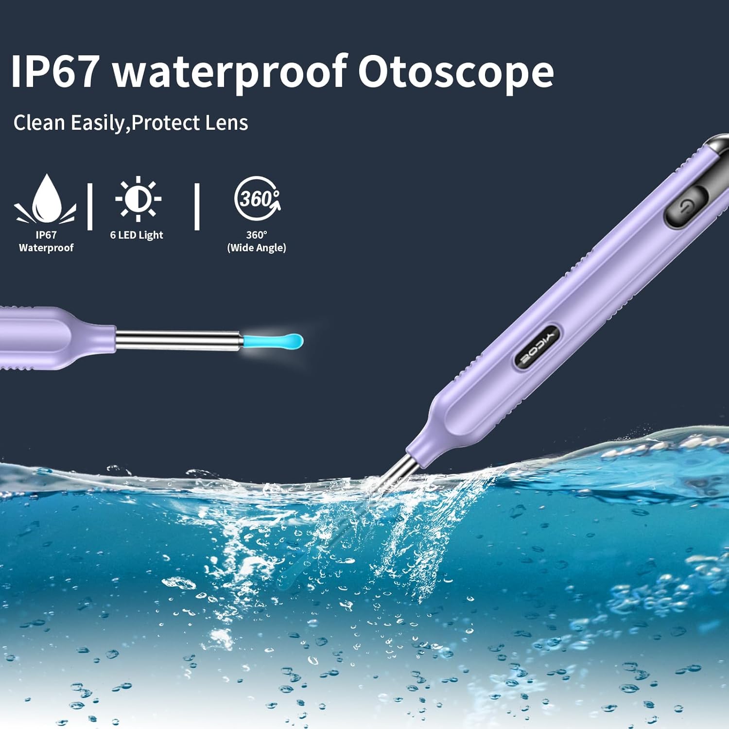 - Long standby & Easy to use: The ear cleaner with camera purple has a built-in 250mAh rechargeable battery, which can be used for 60 minutes after a full charge and has a standby time of up to 60 days. The IP67 waterproof otoscope with camera, ear spoon, and lens can be rinsed with water or wiped with alcohol cotton after use, Do not submerge the entire ear camera in water