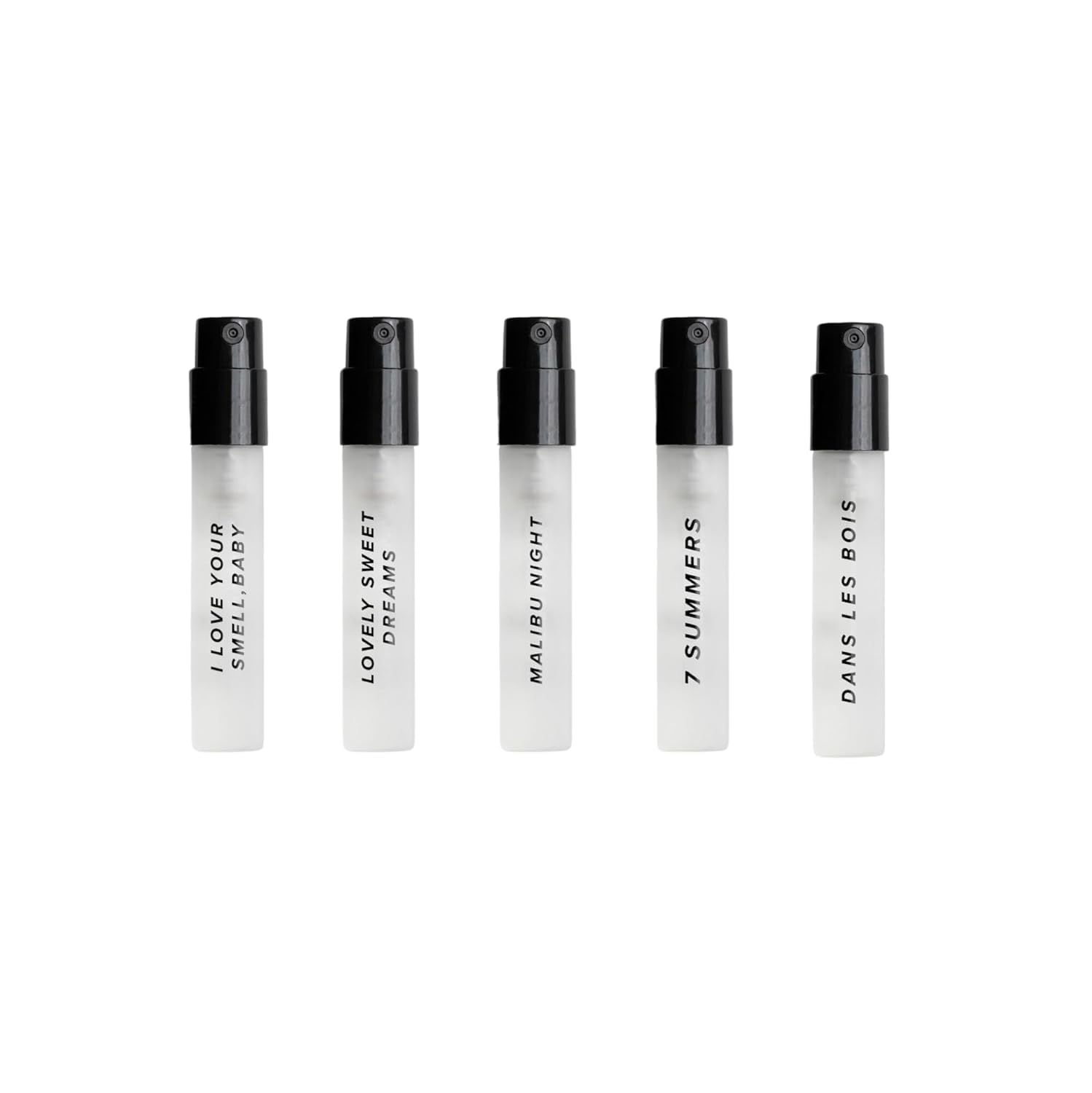 - SET OF FIVE: The DIME perfume sample set is complete with two-ounce samples of our popular 7 Summers, Lovely Sweet Dreams, Malibu Night, Dans Les Bois, and I Love Your Smell, Baby perfumes.