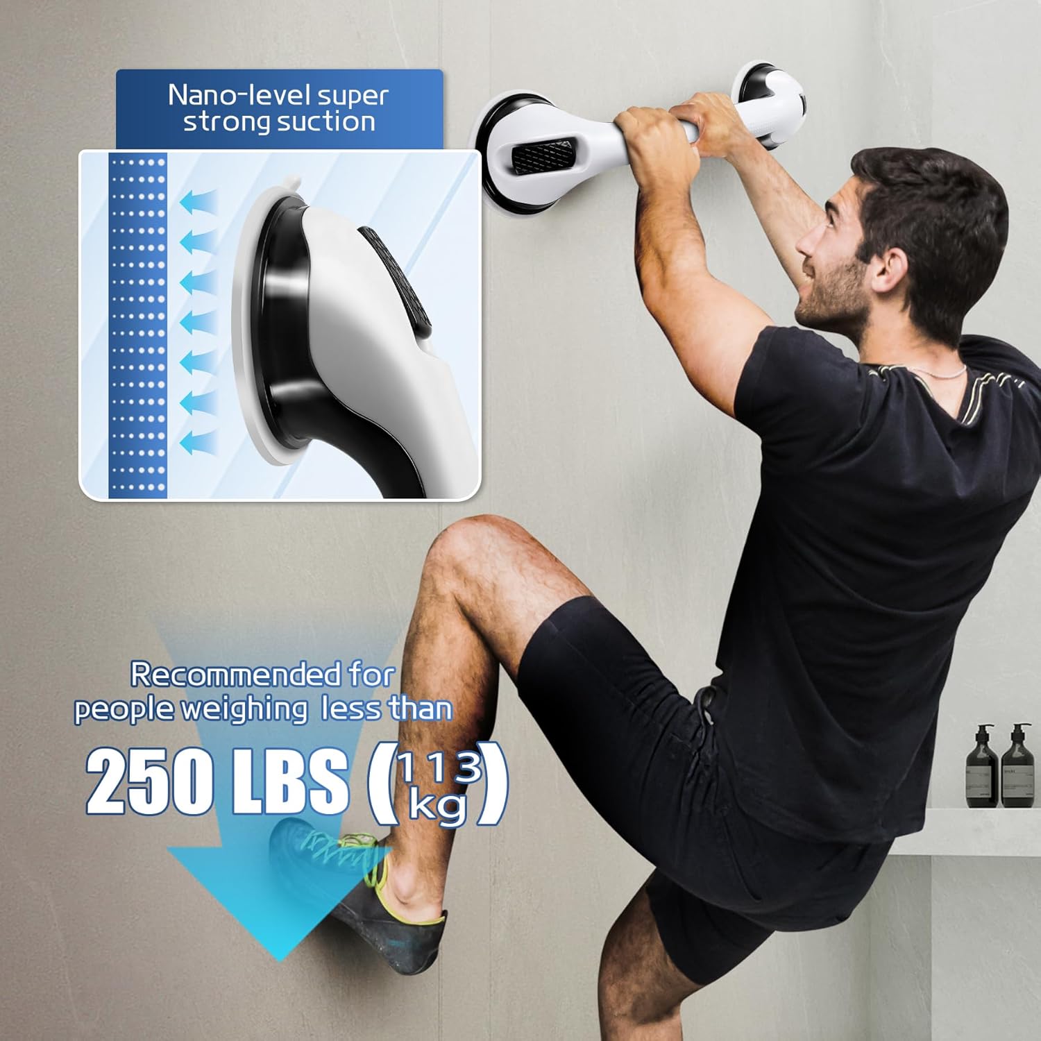 - Safe Support Where It Counts - Perfect for seniors, pregnant women, children, and those recovering from surgery, these grab bars for bathtubs and showers provide reliable stability when entering or exiting slippery tubs and showers. Recommended the shower handle users under 250 lbs (113 kg).