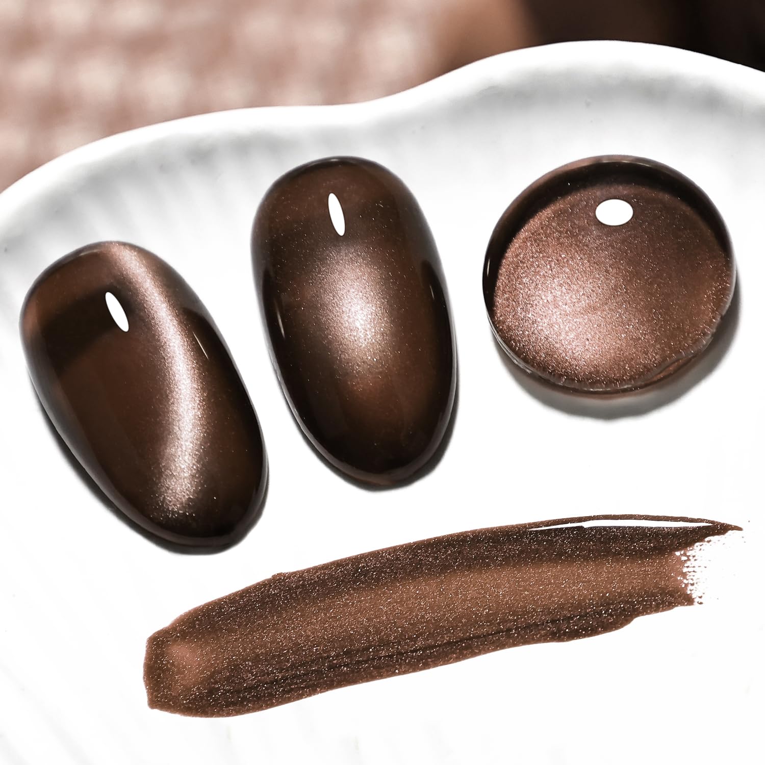 - You’ll Received:1Pcs Jelly Cat Eye Gel Nail Polish Dark Brown.With the built-in Magnet, you can use the magnet to create desired pattern before curing.( Need U V Lamp)