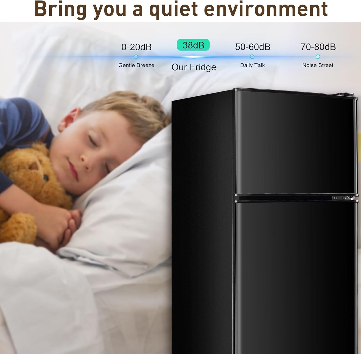- 【Quiet & Eco-Friendly Operation】Enjoy a peaceful environment with this mini fridge refrigerator's advanced noise-reducing technology. Designed for quiet operation, it minimizes disturbance in dorms, offices, or apartments. Additionally, its energy-efficient design helps reduce electricity consumption, making it a sustainable choice for eco-conscious users.