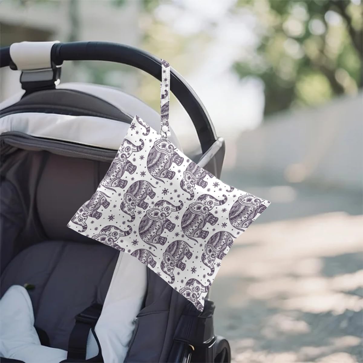 2Pcs Elephant Wet Bag 12x10 Inch, Exotic Elephants Waterproof Travel Laundry Bags, Washable Reusable Wet Dry Bag for Swimsuit Beach Diapers Dirty Yoga Gym Clothes, Elephant Gifts for Women Friend