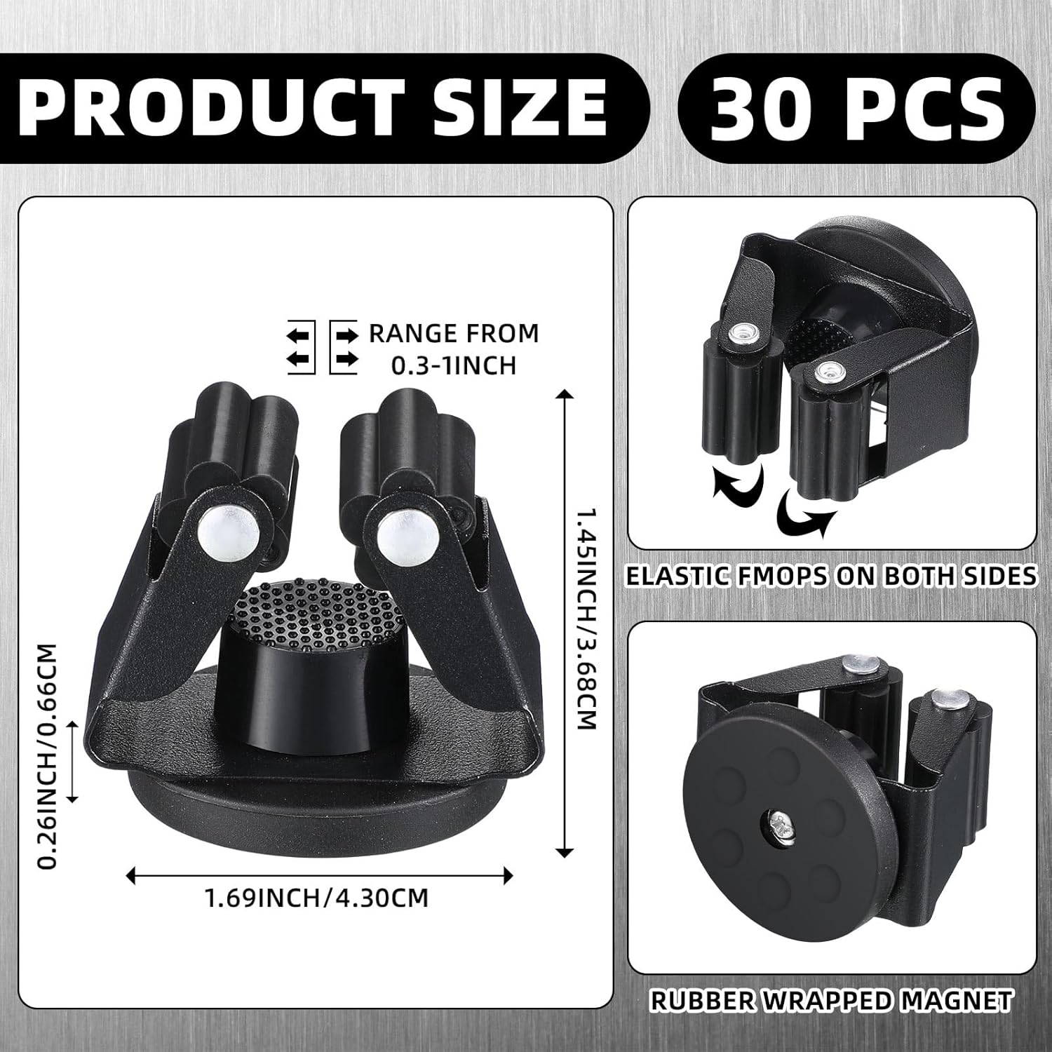 30 Pcs Magnetic Mop Broom Holder Movable Magnetic Broom Holder Rack, Anti Slip Wall Mounted Utility for Cleaning Tools, Garage, Kitchen, Laundry, Garden (Black)
