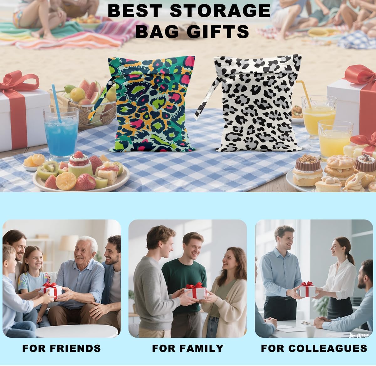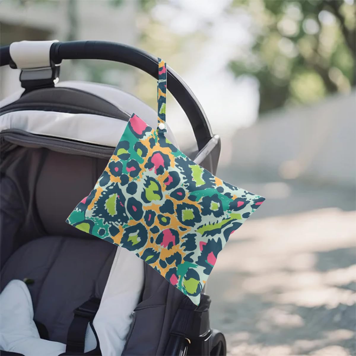 2Pcs Leopard Wet Bag 12x10 Inch, Colorful Leopard Print Waterproof Travel Laundry Bags, Washable Reusable Wet Dry Bag for Swimsuit Beach Diapers Dirty Yoga Gym Clothes, Travel Gifts for Women Friend