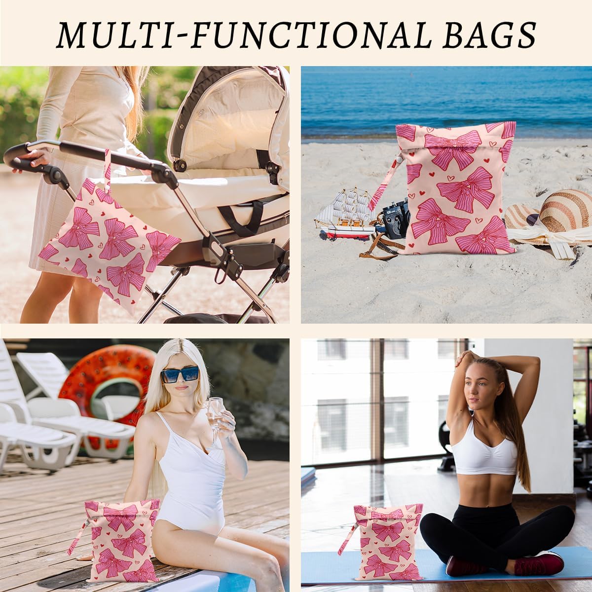 - Multi-Functional: Our wet bags have lots of uses. With a snap handle, snap your bag wherever you need it - changing, suitcase, table or tote bag. They are suit for carrying wet swimsuit bag diapers, wet swimsuits and sanitary napkin, menstrual pad; not just for wet stuff - these bags make excellent organizers for toys, cosmetics, accessories, toiletries, electronics, travel and more.