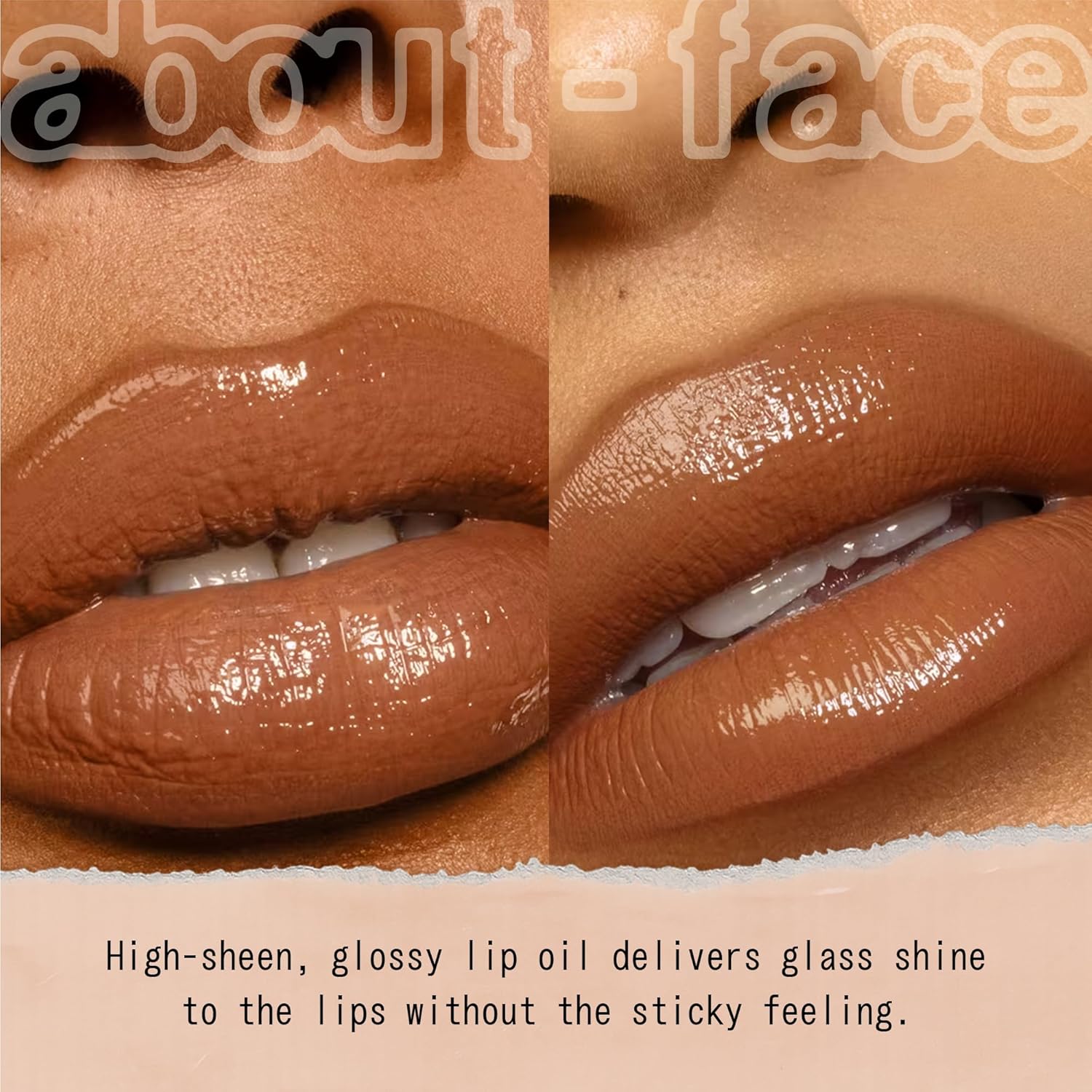 about-face Light Lock Lip Gloss Bitter Half – Non-Sticky, High-Shine Lip Oil Gloss with Coconut Oil, Peppermint & Lavender – Vegan, Cruelty-Free, Clean Beauty – 0.21 oz (Rich Espresso)