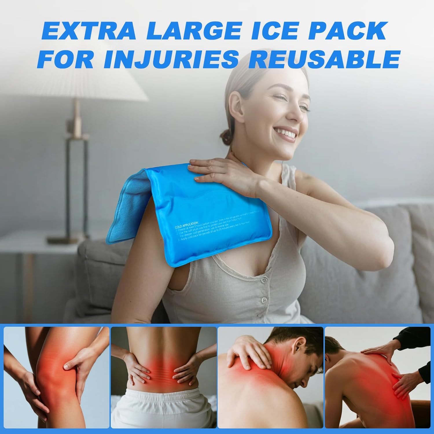 Large Flexible Ice Pack for Injuries Reusable Gel, 11x14.5 Inches, Cold Compress for Hip, Shoulder, Knee, Back Pain, Swelling, Bruises, Surgery